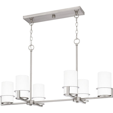 Modern Island Pendants Clean lines and geometric shapes in brushed nickel, matte black, and chrome finishes complement contemporary kitchen designs.