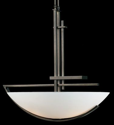 Hubbardton Forge Ondrian Large Adjustable Pendant with glass bowl and diffuser. Includes adjustable stem and square canopy kit. Can be used on a sloped ceiling. This unique pendant has a sleek, contemporary look and would be ideal in a variety of settings throughout the home, but would be ideal in a foyer, great room, or above a dining room table.