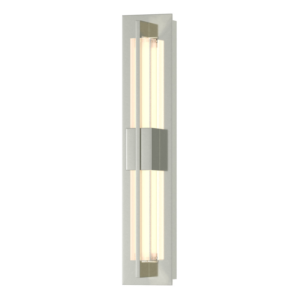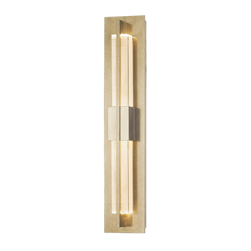 If you need to pull a room's design together, our small Double Axis LED Wall Sconce will help you find your center. A single, handcrafted aluminum arm angles around to clasp the glass at either end with a wider band bisecting the center.