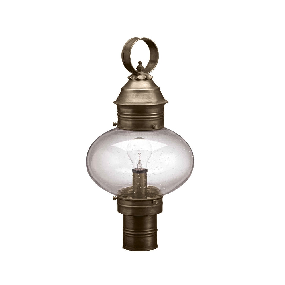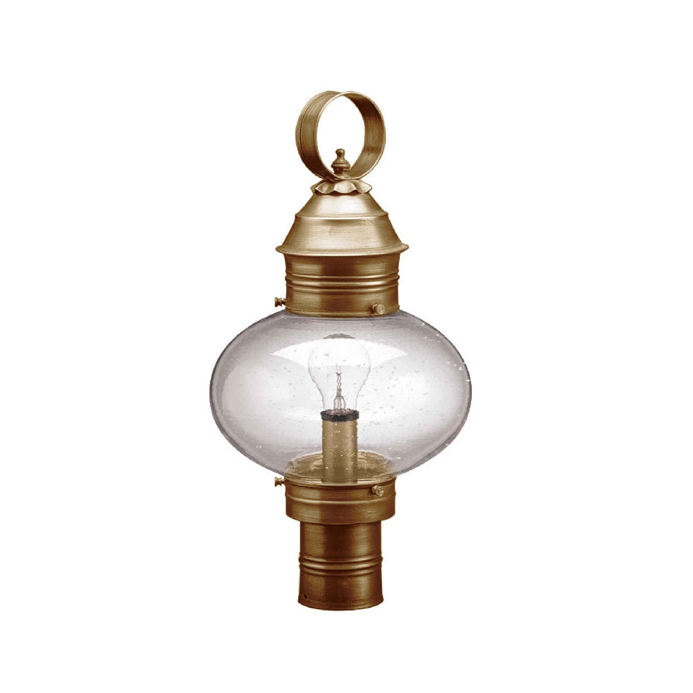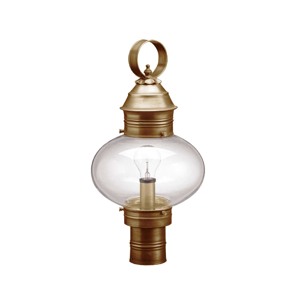 A customer favorite, our Onion Collection is the hallmark of Northeast Lantern. Each piece is carefully cut, soldered, finished and wired by hand. Crafted with a detachable globe, they are easy to maintain. The 2043 (pictured in dark brass with optional 9¾" optic globe) is a large onion post mount fixture with a 3" fitter and (1) 75-watt medium base socket. All joints are securely soldered in place with precision and attention to detail. Three solid brass thumbscrews secure the hand blown glass globe in place ensuring easy removal for cleaning and bulb replacement.
