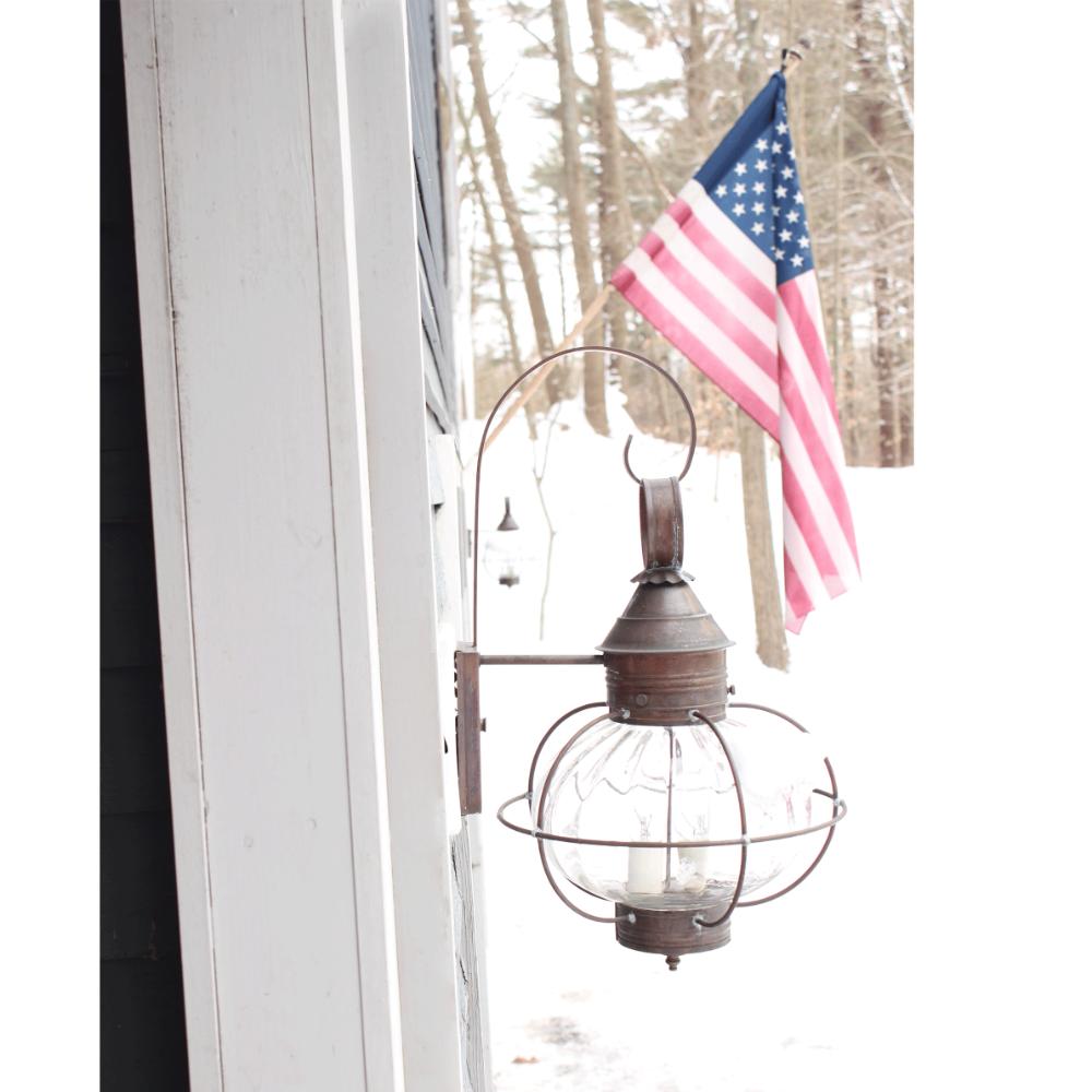 Evoking the classic lanterns from New England's rich nautical history, the Caged Onion collection features an iconic shape with a handcrafted brass or copper cage, protecting the hand-blown glass globe. Crafted with a detachable globe, they are easy to clean and maintain. The classic design makes them one of the most popular lights we make and is the inspiration for our company logo.
