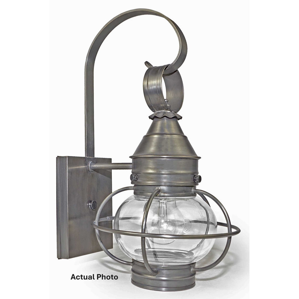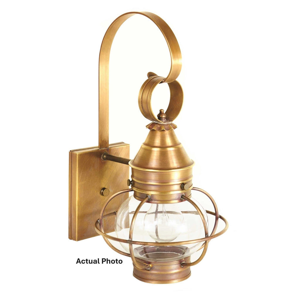 A customer favorite, our Onion Collection is the hallmark of Northeast Lantern. Each piece is carefully cut, soldered, finished and wired by hand. Crafted with a detachable globe, they are easy to maintain. This Quick Ship* 2511 (pictured in antique brass with a 6" clear globe) is a small caged onion wall mount fixture with (1) 75-watt medium base socket from the top. All joints are securely soldered in place with precision and attention to detail. Three solid brass thumbscrews secure the caged hand blown glass globe in place ensuring easy removal for cleaning and bulb replacement. This Quick Ship item ships within 5 business days after receipt of order.