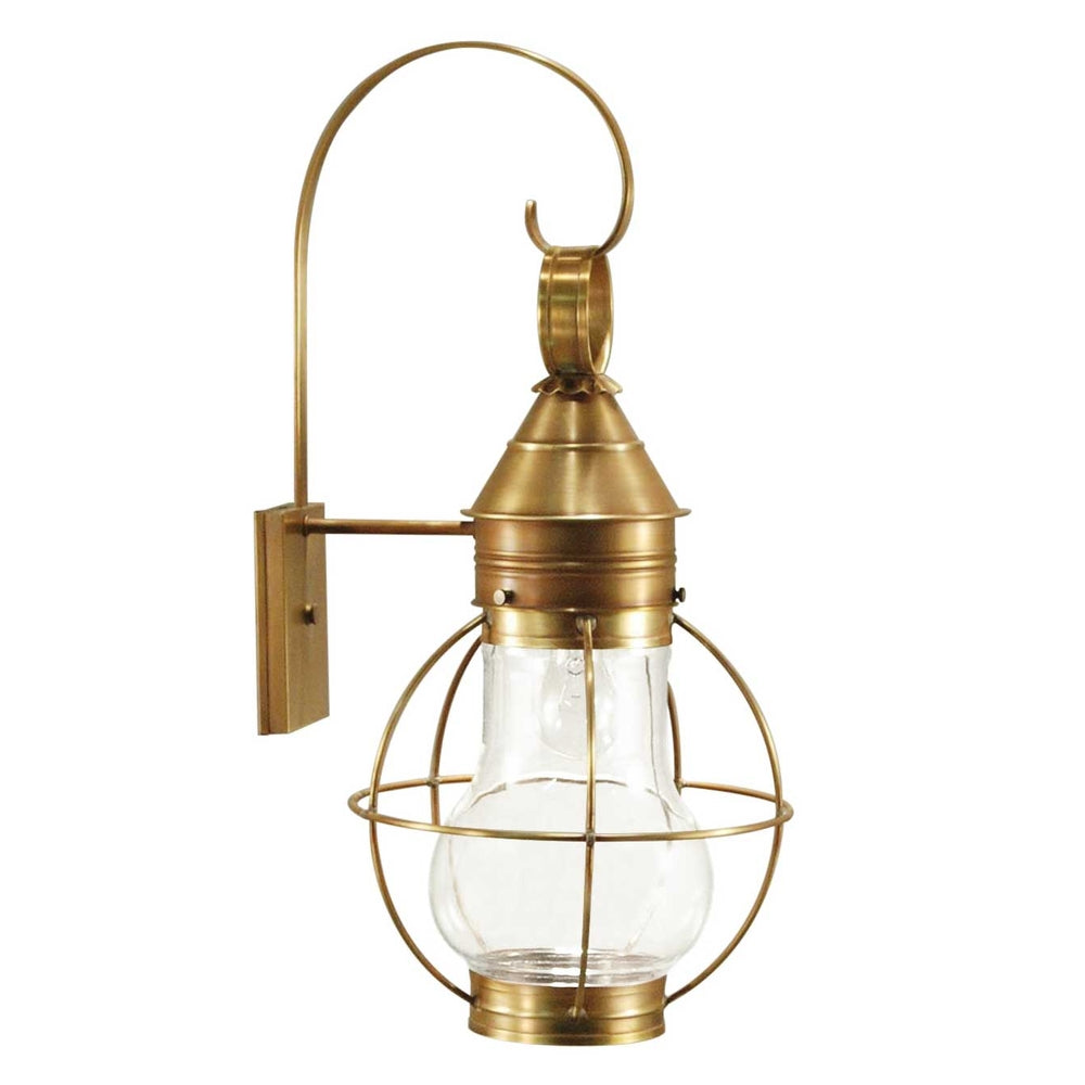 Our new Bosc Collection offers an elegant pear shaped globe. Similar to our Onion Collection, each piece is carefully cut, soldered, finished and wired by hand. Crafted with a detachable globe, they are easy to maintain. This 2731 (pictured in antique brass) is a medium caged pear wall mount fixture with a 7" clear globe and (1) 75-watt medium base socket. All joints are securely soldered in place with precision and attention to detail. Three solid brass thumbscrews secure the caged hand blown glass globe in place ensuring easy removal for cleaning and bulb replacement.