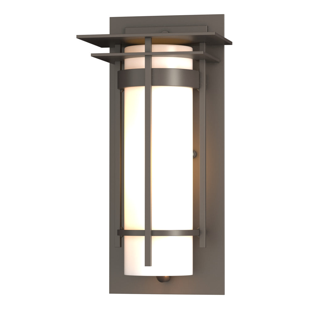 Hubbardton Forge Banded Aluminum Small Outdoor Sconce with Top Plate and two glass options. This is one of Hubbardton Forge's most popular outdoor wall sconces and will work well with almost any outdoor decor. Also available in Fluorescent as a special order. Please call or email us for more details. This smaller sconce blends modern influences with a traditional feel.