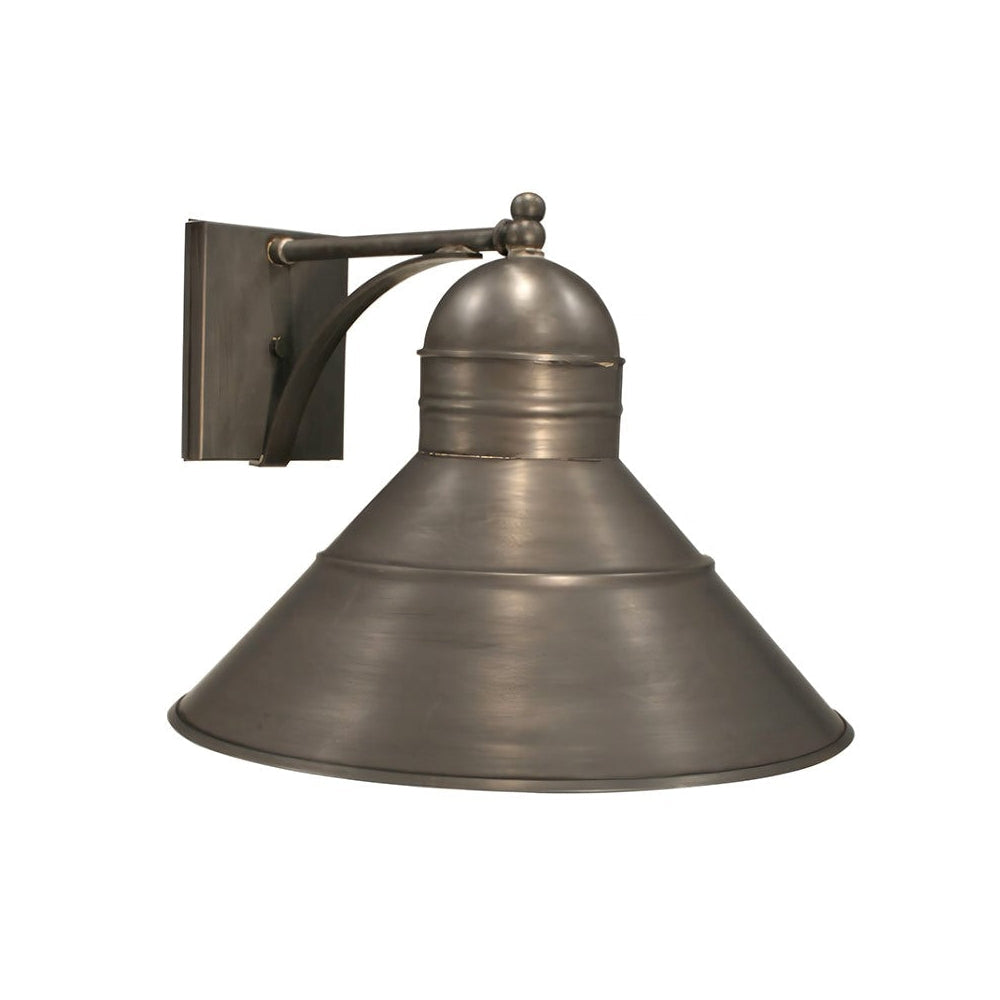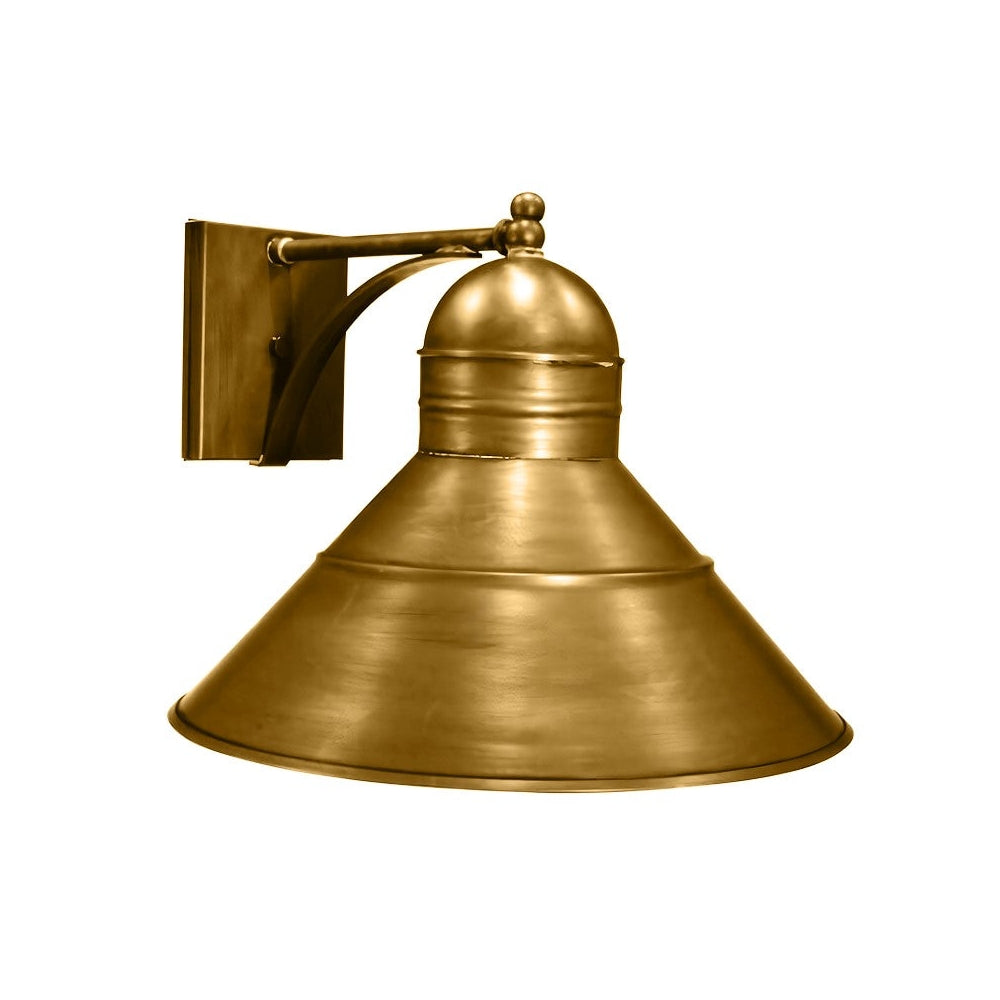 This 3441 (pictured in antique brass) is a wall mount fixture with (1) 75-watt medium base socket. All joints on the 3 spinnings for this light are securely soldered in place with precision and attention to detail.