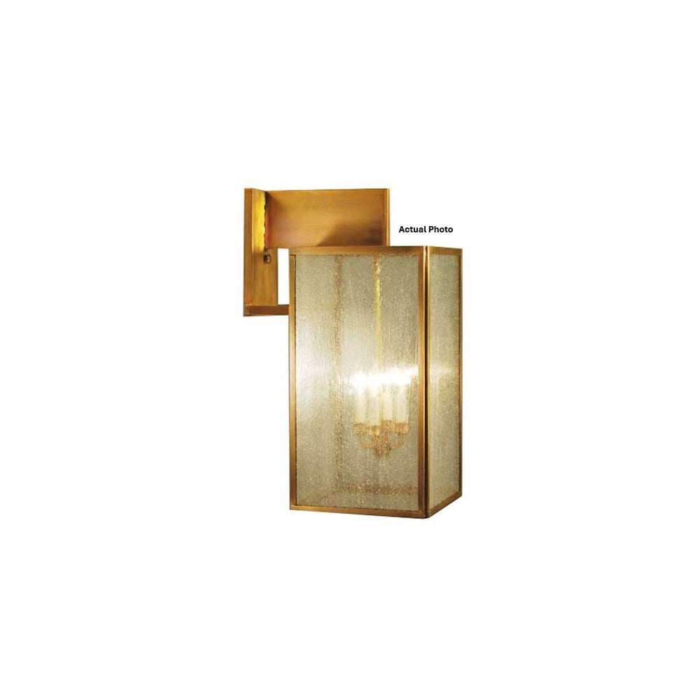 This Midtown 7547 (pictured in antique brass and optional seedy marine glass) is a bracket wall mount fixture. It is available with either (1) medium base socket suspended from the top or (4) 60-watt candelabra sockets and plastic cream sleeves. The glass drops into a channel on the sides. It has an open bottom which makes for easy cleaning and bulb replacement if needed. All joints are securely soldered in place with precision and attention to detail.