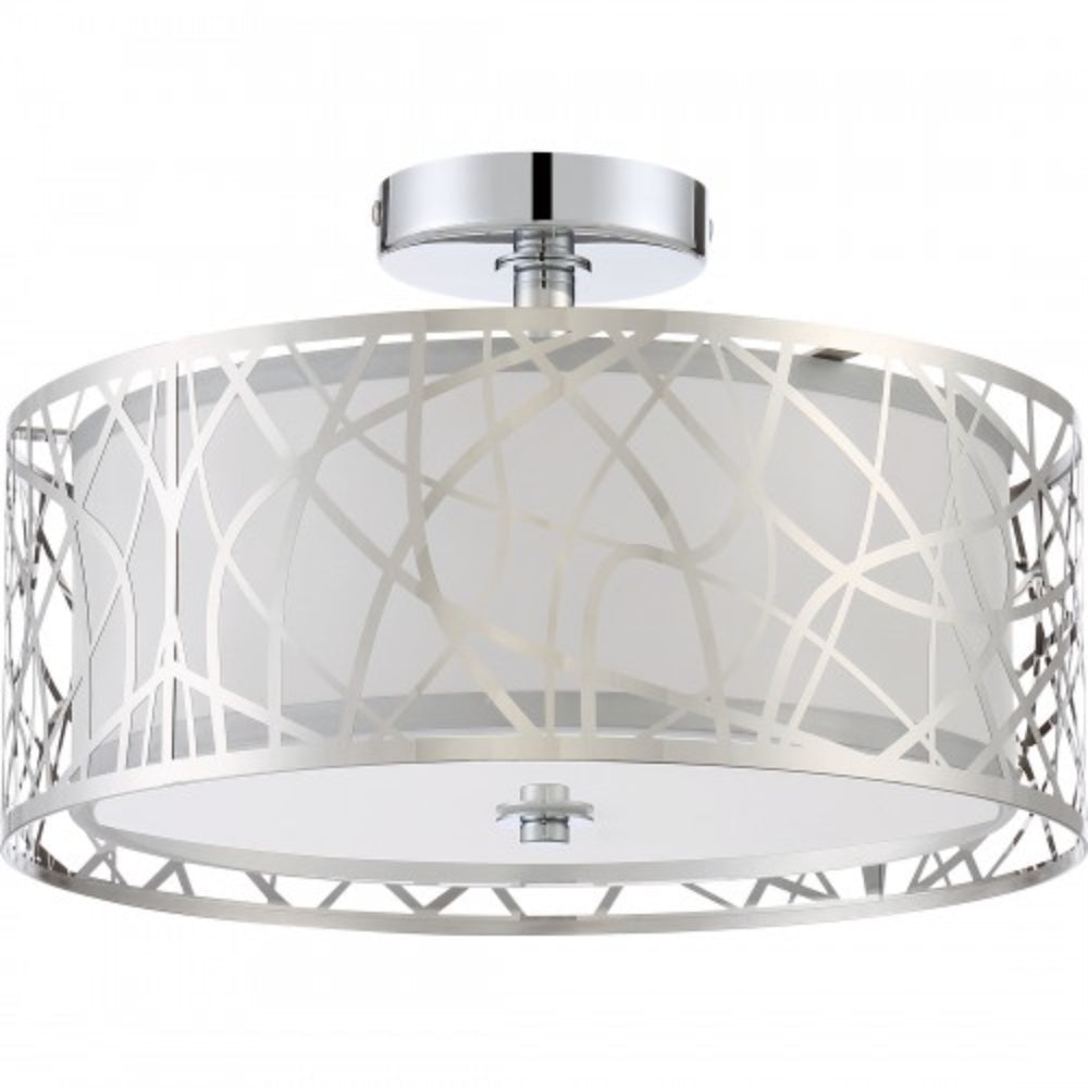 Contemporary, diverse and sharp are what makes the Platinum Collection's Abode series a hit. The dual shades are combined to create a cohesive look with clear organza trimmed in grey under a laser cut metal shade with an intriguing, unique design. The sleek polished chrome finish completes the look.