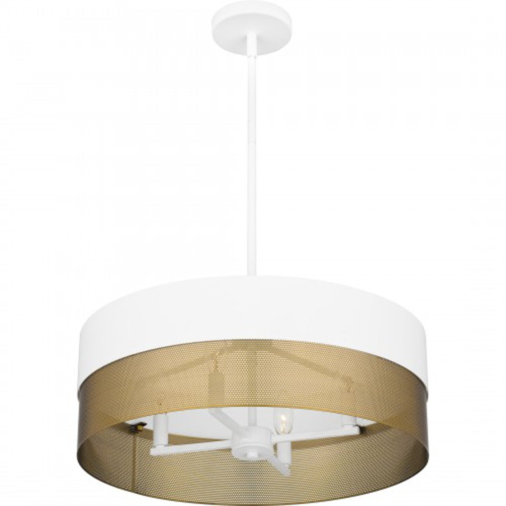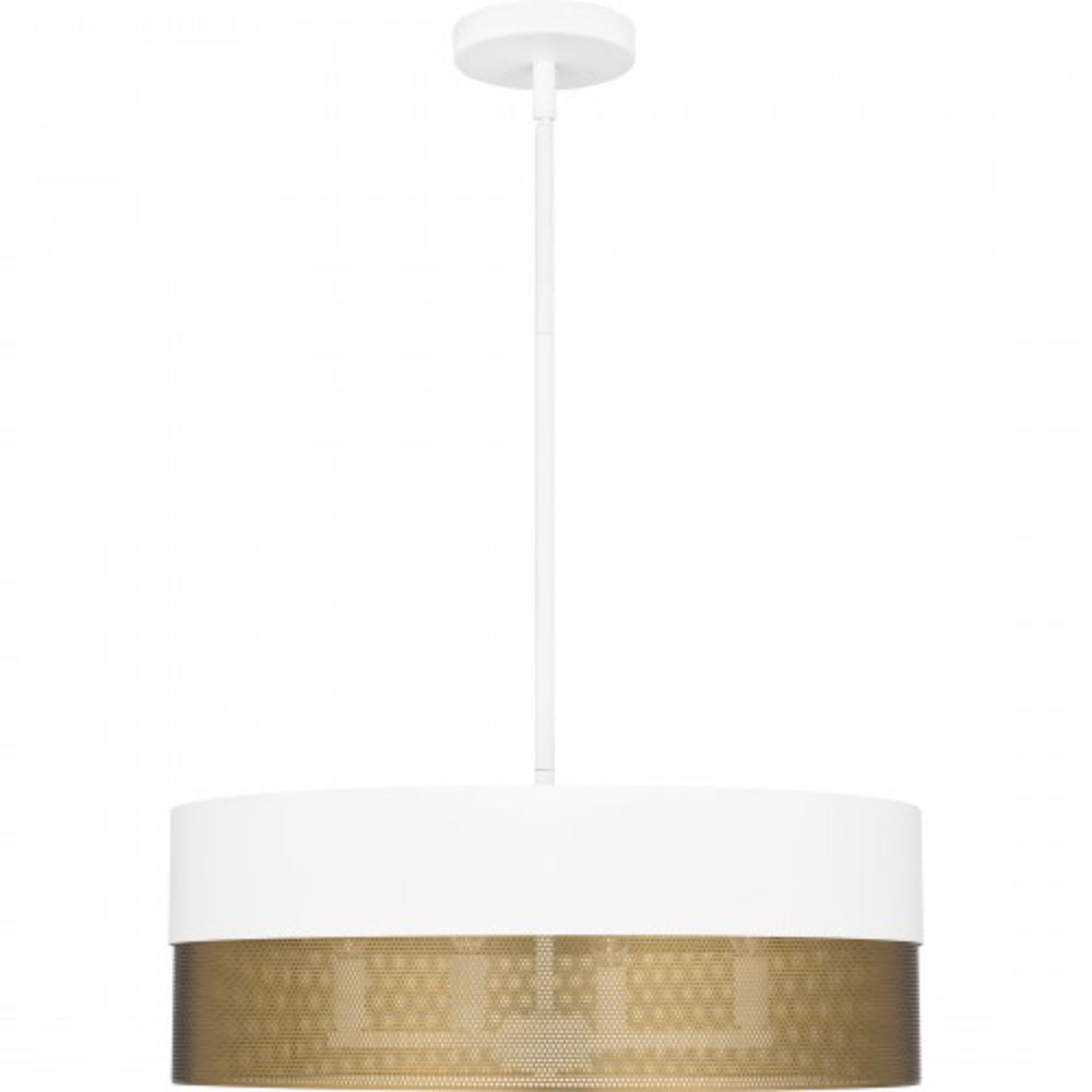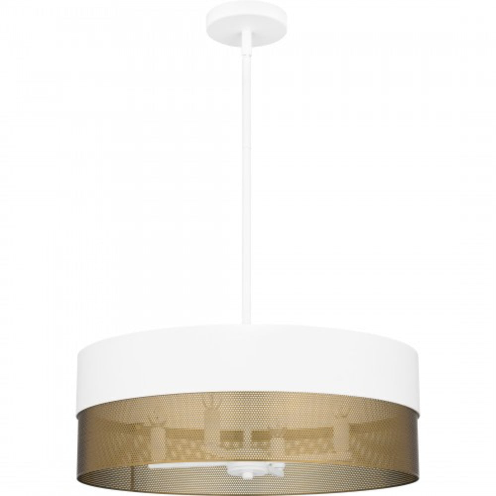 With a two-tone design and industrial styling, Alani pendant lights make a true statement in any space. Available in either matte black or matte white, the drum silhouette incorporates a perforated gold metal shade that adds a unique textured effect. With their versatile design, these oversized pendants look great over a table, in a bedroom, or in a living room area.