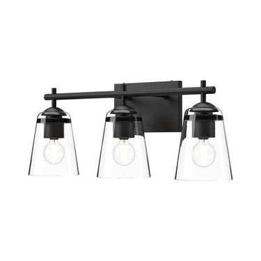 Addison is a chic and modern take on a traditional bath bar. With a sleek, geometric metal frame and curved clear glass shades, this collection is completely timeless. Place this above your vanity mirror for an extra flair of modern elegance.