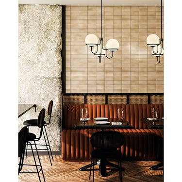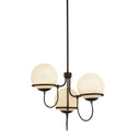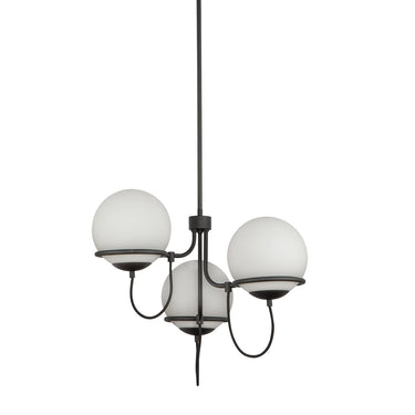 Alba is a mystical mix of Italian modern and 50's whimsy. With seemingly floating orbs of Matte Opal Glass dancing around a minimal frame, this collection seems to float effortlessly through any space. Featuring a stunning mix of Matte Black and Aged Gold details.