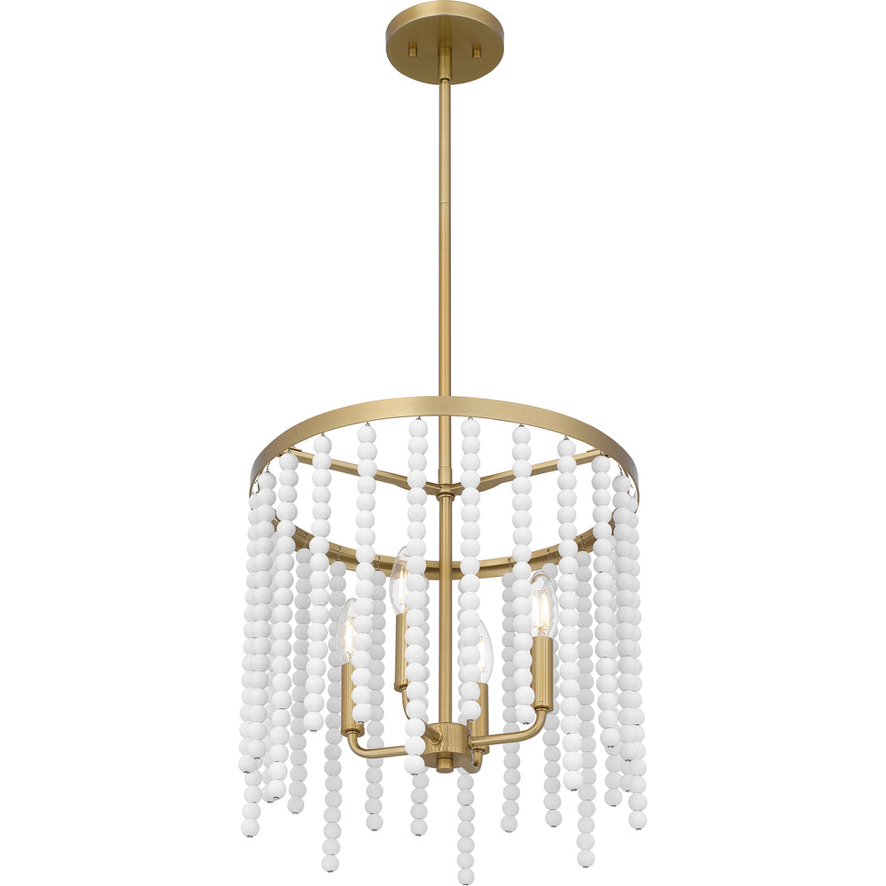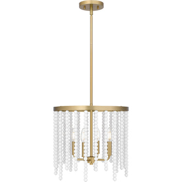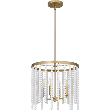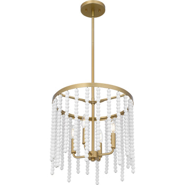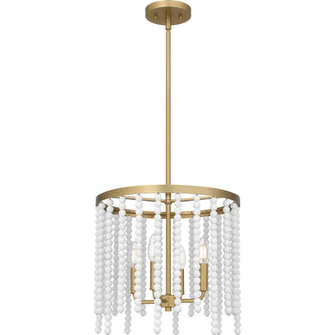 The Apelle collection takes a fun, playful approach to classic lighting design. White wood beads add a touch of glamour to the otherwise simple silhouette, while an aged brass finish completes the look with warmth. Choose from a pendant light, semi-flush mount, or linear island chandelier to brighten up your home in style.