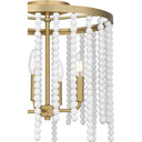 The Apelle collection takes a fun, playful approach to classic lighting design. White wood beads add a touch of glamour to the otherwise simple silhouette, while an aged brass finish completes the look with warmth. Choose from a pendant light, semi-flush mount, or linear island chandelier to brighten up your home in style.