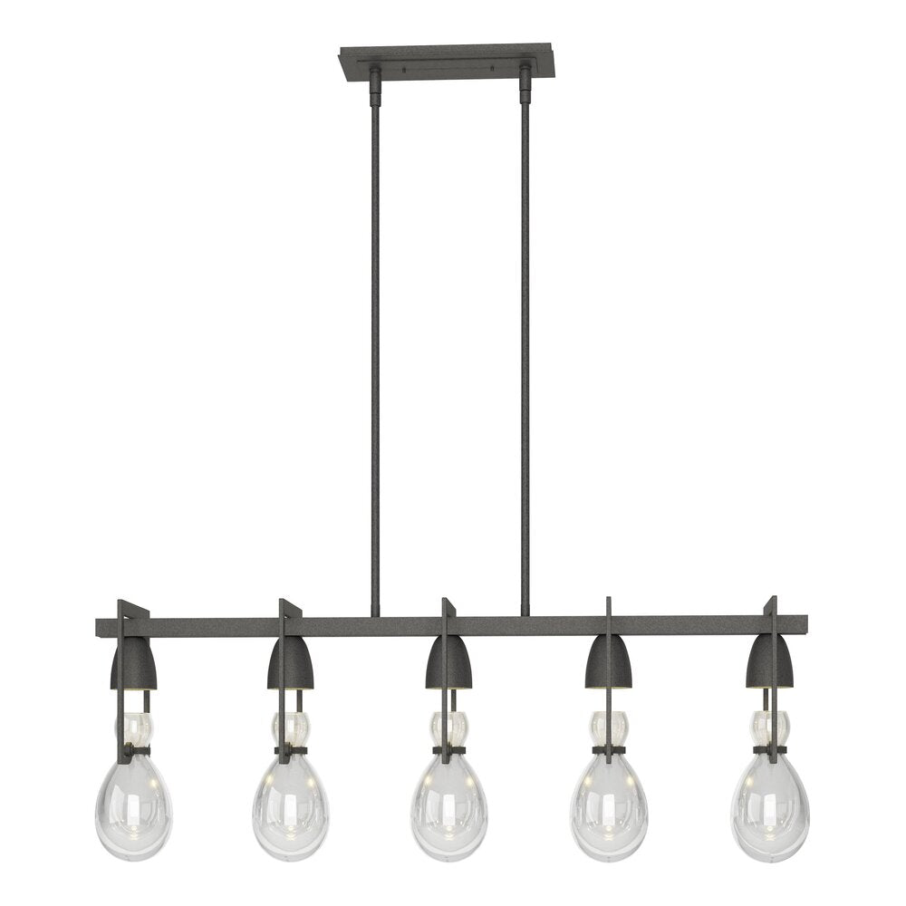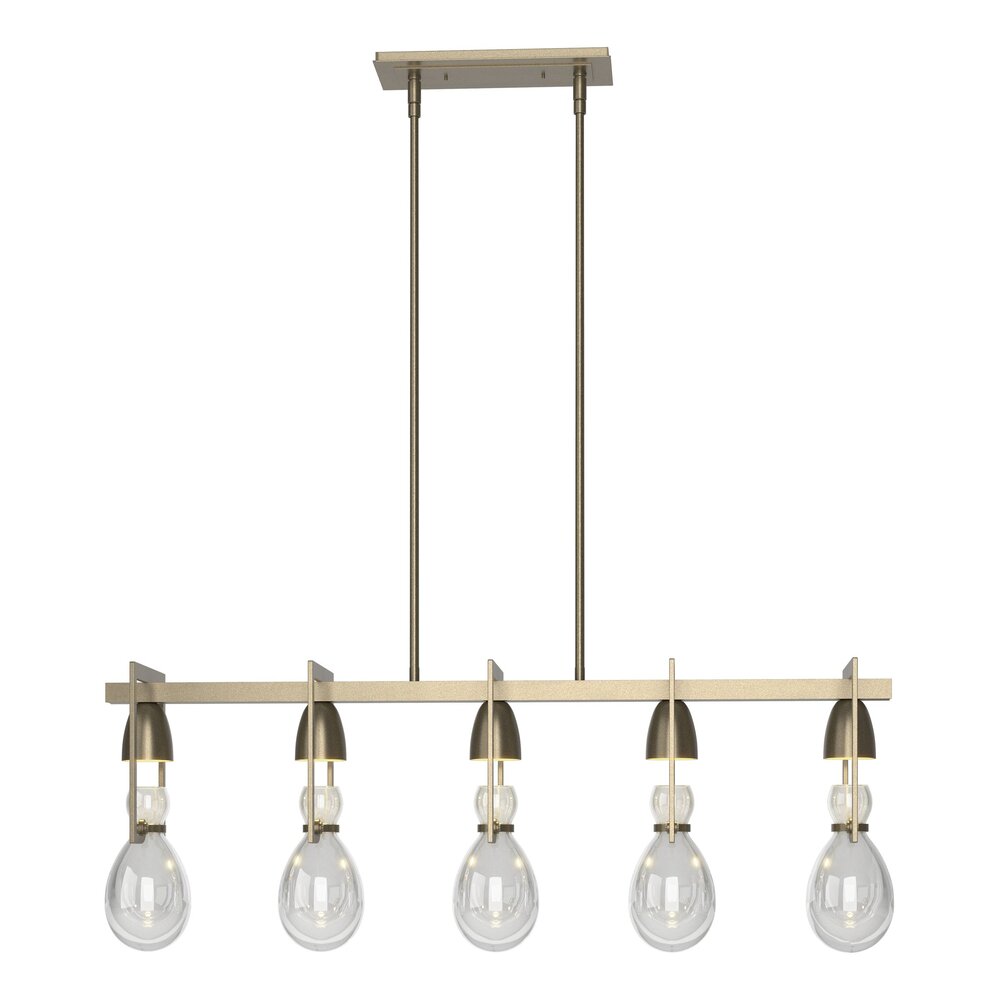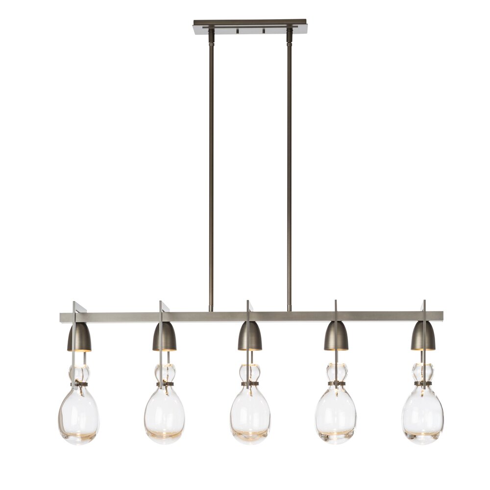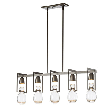 Pools of light trickle down and are captured within thick hand-blown hourglass vessels. Simplicity and detail for well-balanced style. Part of the New Traditional Collection.