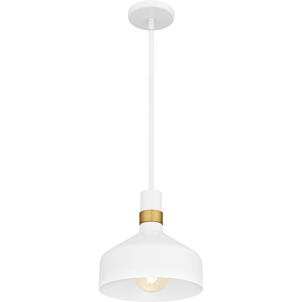 Elevate your space with the Arbor mini pendant, where modern design seamlessly blends with industrial flair. This chic fixture showcases a sleek metal shade available in either matte black or matte white, each adorned with a subtle gold band for a hint of sophistication. Perfect for adding a touch of style to any setting, the Arbor mini pendant is ideal for illuminating a kitchen island, bar area, or office space.