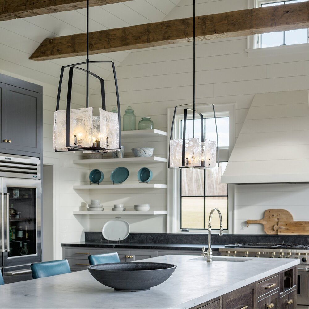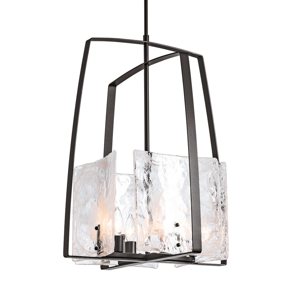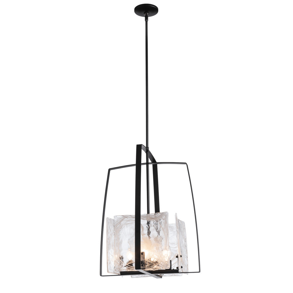 A clean blend of traditional and contemporary forms is the first thing you'll notice about the Arc Lantern Pendant with its unique, slightly convex glass panels. With a freeform white "swirl", the thick hand poured glass panels have both depth and clarity. Hang singly at an entryway or small table or in multiples down a hallway, larger dining table or over an island, the Arc Lantern's glass adds a touch of modern to an otherwise classic form.