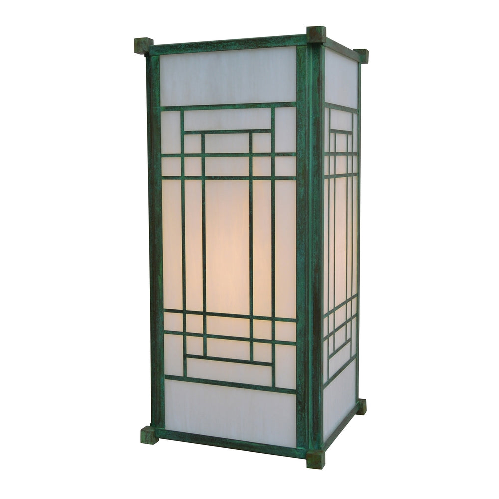 The Arroyo Craftsman SDB-10 measures 10 inches wide by 21 inches tall by 11 inches deep. It is rated for a wet location. It has one 100 watt medium incandescent base socket. The mounting base is 5 inch x 8 inch and the center to top is 10 1/2"inches.
