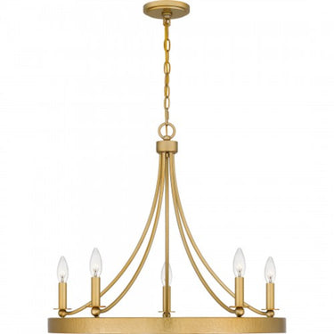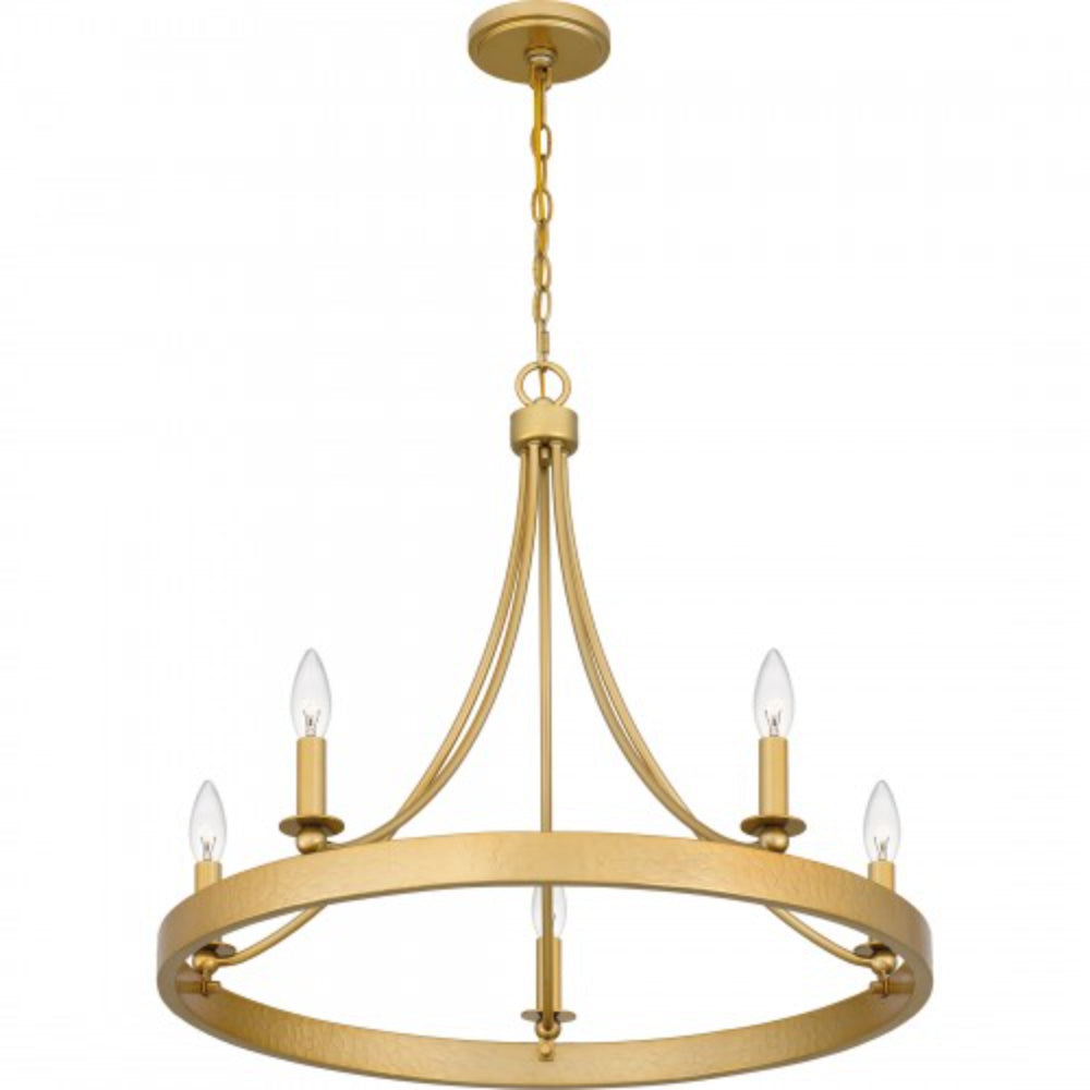 The Aspyn light illuminates soft texture thanks to embossed, pebbled detailing. Available as a chandelier or island light, Aspyn features a light gold finish meant to evoke the luster of brass. This design is ideal for contemporary and transitional spaces, infusing a subtle dash of warmth and whimsy.