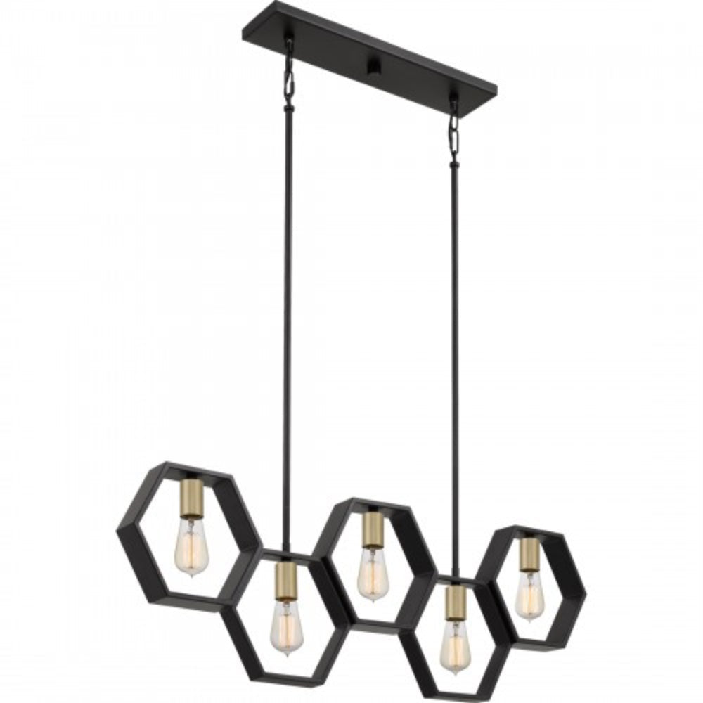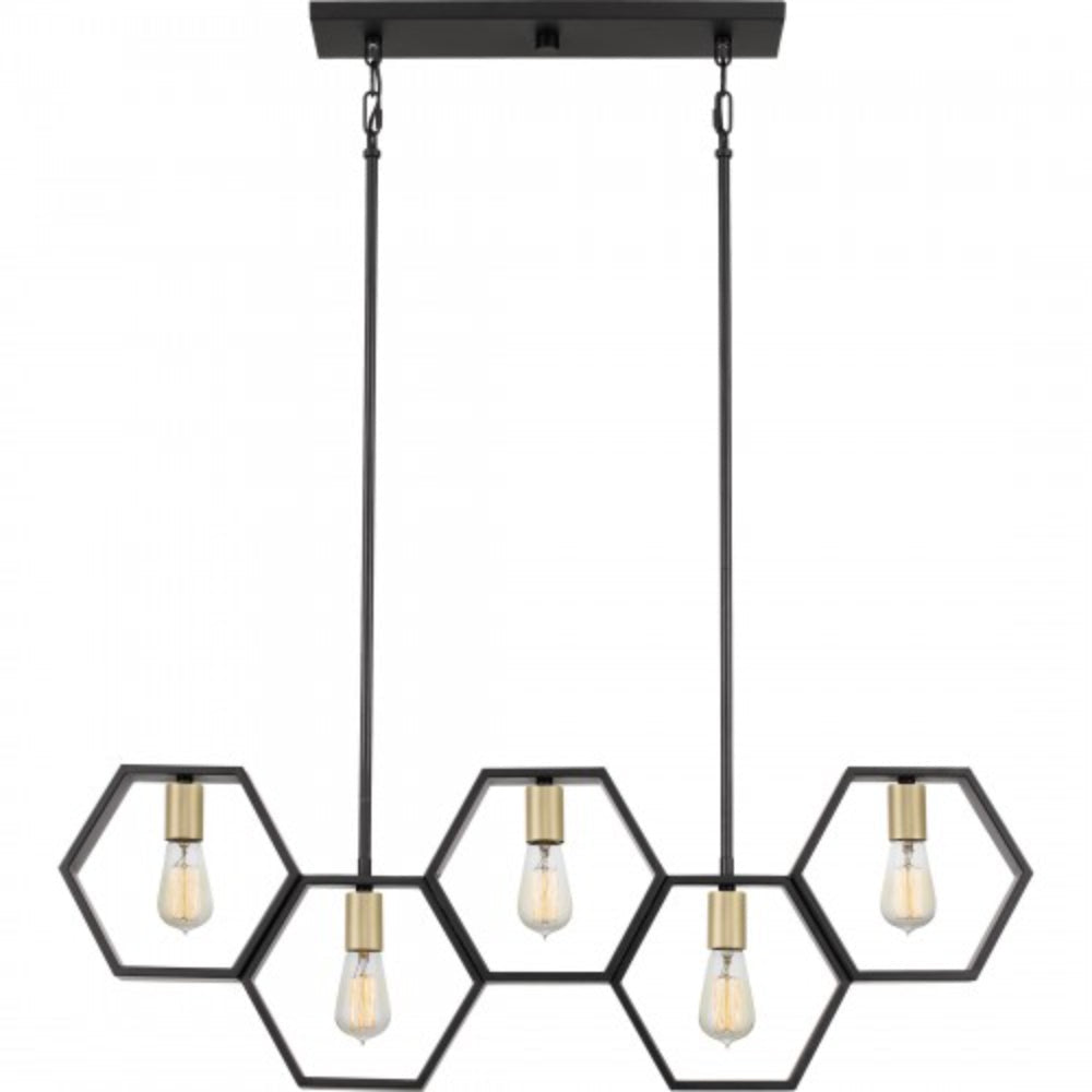 The deep earth black finish of the Bismarck's geometric frame emphasizes the bold lines of its modern design. Painted gold sockets serve as the perfect contrast in both tone and style, adding drama and depth. Pair with vintage filament bulbs for maximum flair.