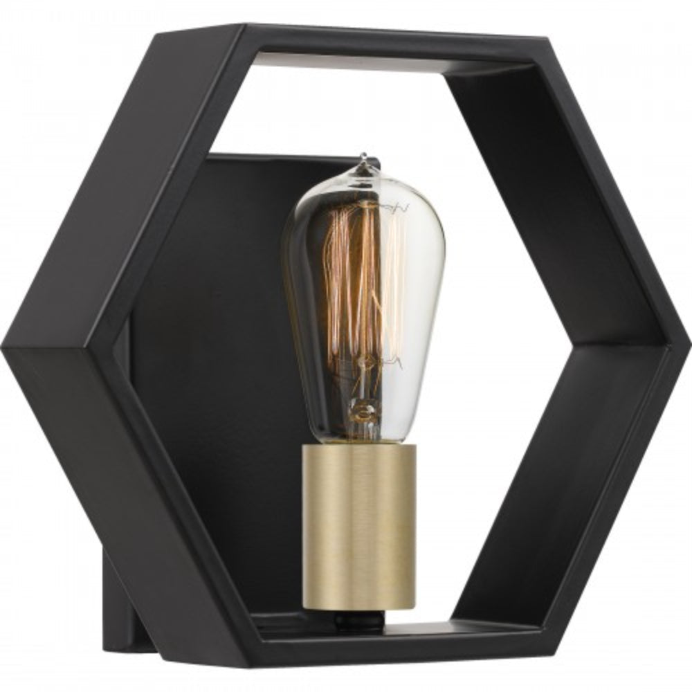 The deep earth black finish of the Bismarck's geometric frame emphasizes the bold lines of its modern design. Painted gold sockets serve as the perfect contrast in both tone and style, adding drama and depth. Pair with vintage filament bulbs for maximum flair.