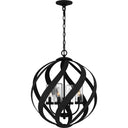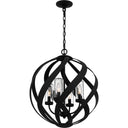 A spiral sensation, the Blacksmith pendant's bold ironwork moves in soft curves along an orb-shaped silhouette. The earth black finish enhances the silhouette's negative space for a sultry, artful effect. The candles are fitted with cylindrical shades in clear seedy glass that soften the light of this stunning collection.