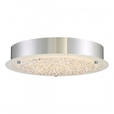 A simple yet stunning flush mount, the Blaze series is modern and sleek. The shimmering crystals "float" on a disk on glass that is frosted on the perimeter to enhance the striking design. The Polished Chrome finish on the base and accents add the perfect finishing touch.