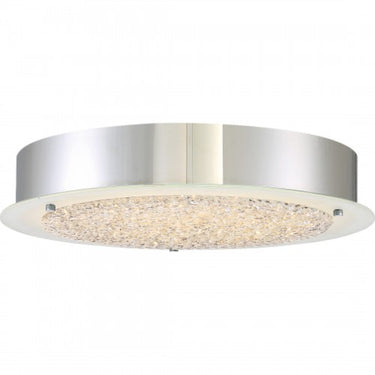 A simple yet stunning flush mount, the Blaze series is modern and sleek. The shimmering crystals "float" on a disk on glass that is frosted on the perimeter to enhance the striking design. The Polished Chrome finish on the base and accents add the perfect finishing touch.
