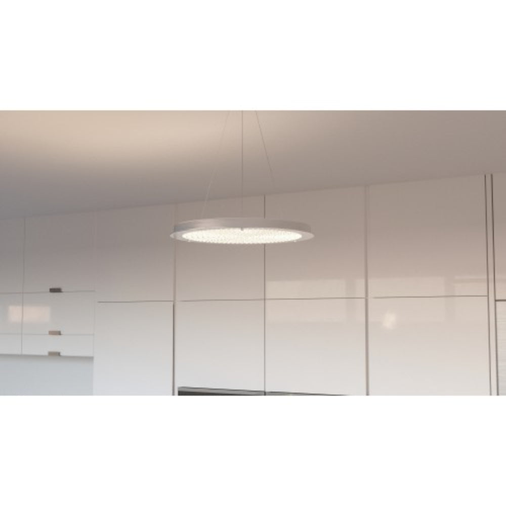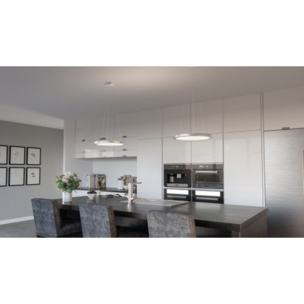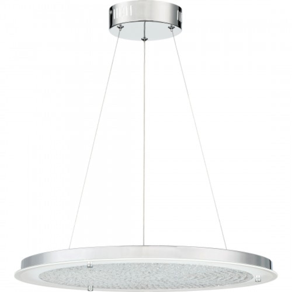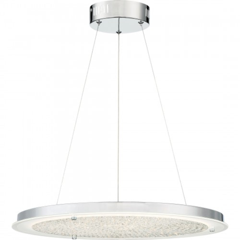 A simple yet stunning pendant, the Blaze series is modern and sleek. The shimmering crystals "float" on a disk on glass that is frosted on the perimeter to enhance the striking design. The Polished Chrome finish on the base and accents add the perfect finishing touch. Matching flush mount available.