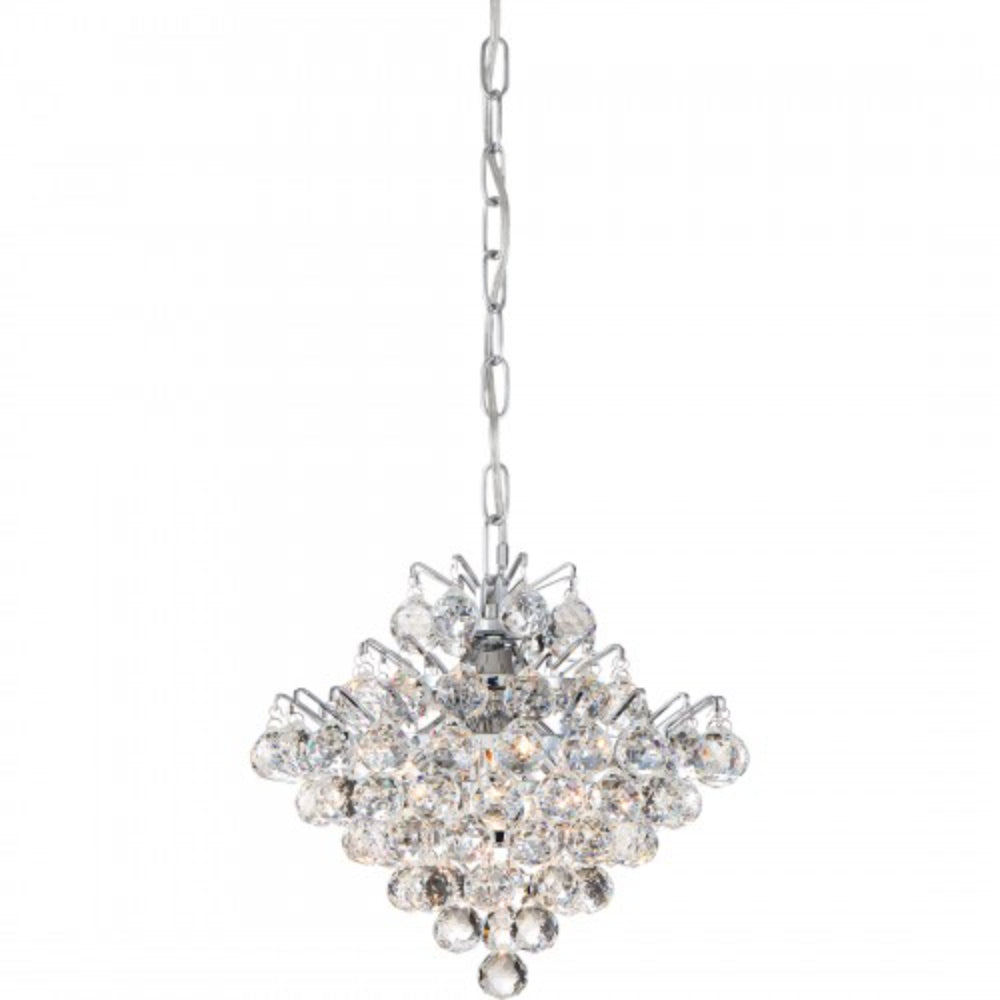 With sparkling crystals and a sleek Polished Chrome finish, the Bordeaux Collection adds the perfect elegant touch to any room. The bulbs are included and enhance the shimmering effect of the cascading drops. Bring the signature look of Platinum by Quoizel to your home.