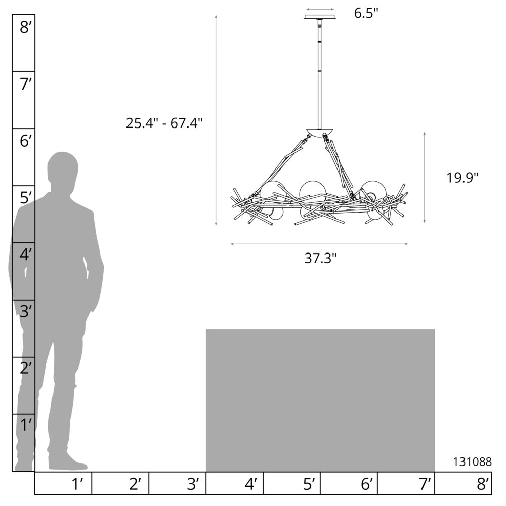 The Brindille Collection is known for its hammered metal "twigs", inspired by nature's bountiful Vermont forests. HF's longtime head of design, David Kitts, "wanted to take our classic hammered Brindille elements and bring them into a more contemporary setting form, scale and light source" in creating the 6-Light Circular Pendant.