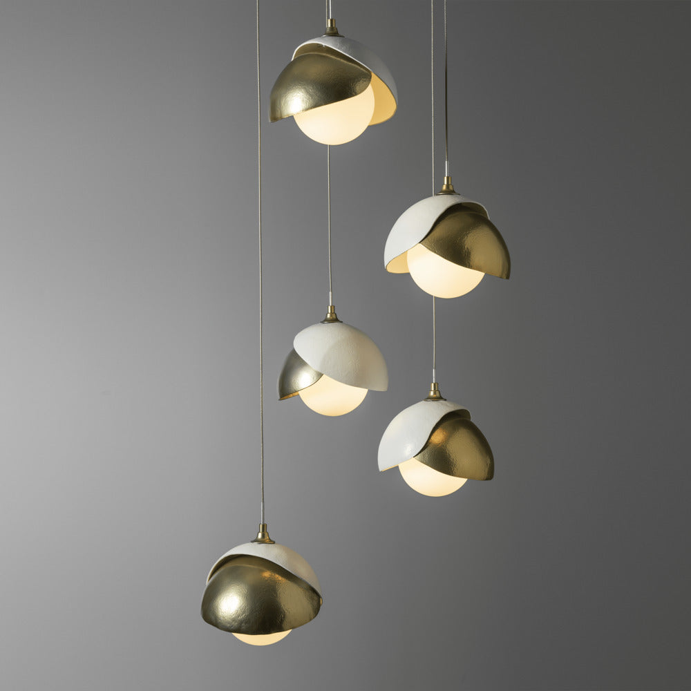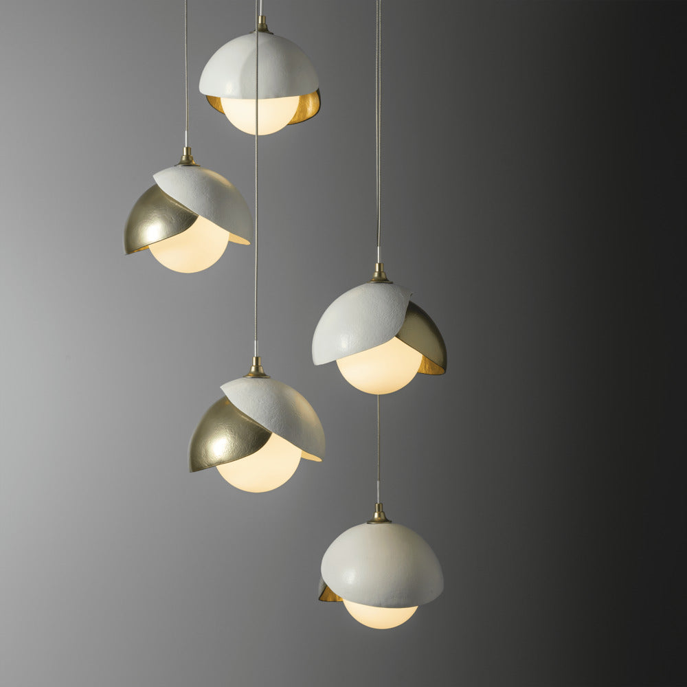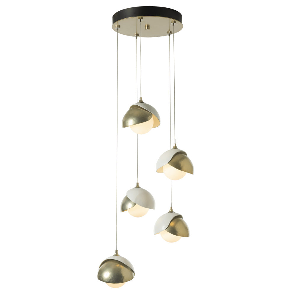 Hubbardton Forge 131125 Brooklyn 5-Light Double Shade Pendant White & Bronze