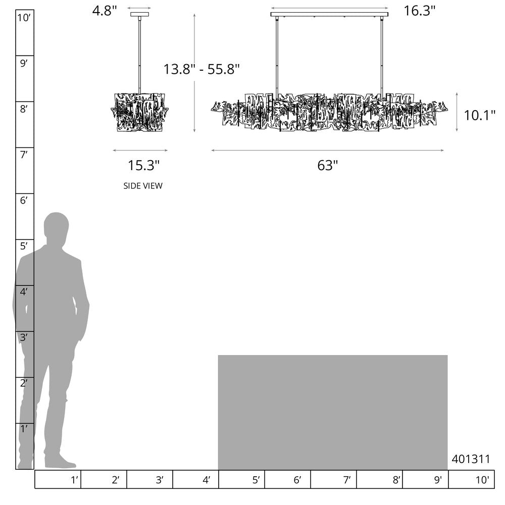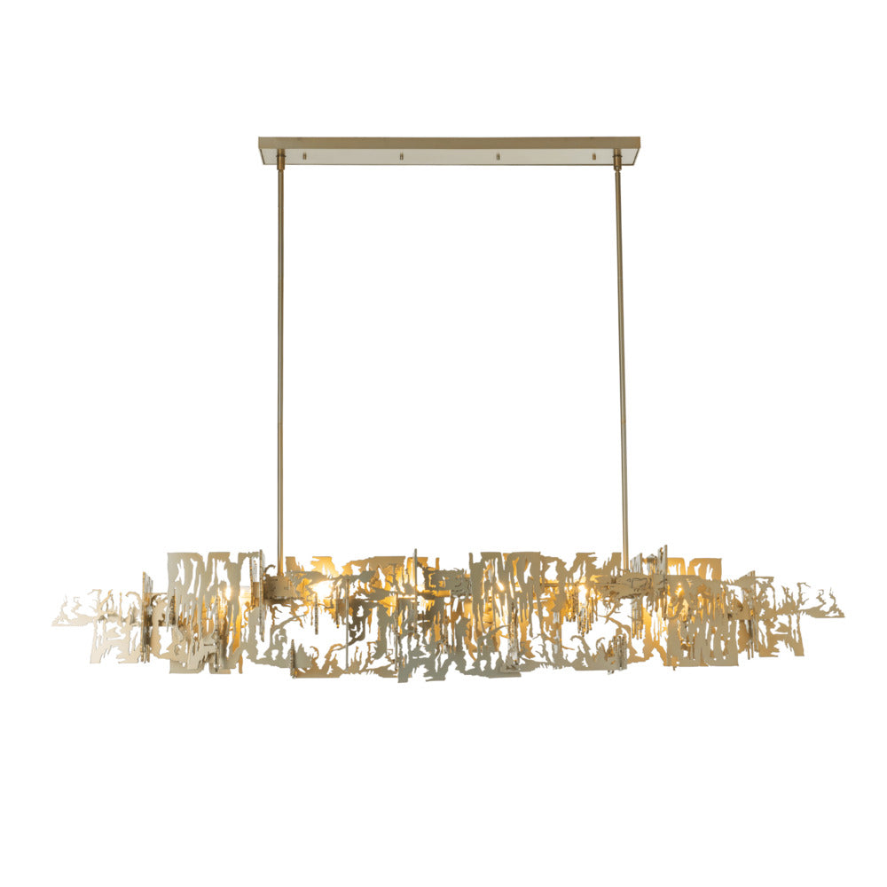 At over 5 ft in breadth, this large Brutus Pendant makes a bold statement in any space. The Brutalism movement of the '60s and '70s is apparent in this pendant design. Designer Jason Hancock created a complex metal puzzle whose pieces are combined to create a unique, one-of-a-kind lighting fixture. Part of ART + ALCHEMY by Hubbardton Forge.