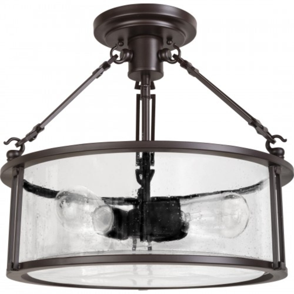 The Buchanan Collection evokes a sense of strength and style. The Western Bronze finish is a rich matte and the arms are comprised of long, rectangular links holding the piece together. The clear seedy glass adds a touch of elegance to the simplistic framework.