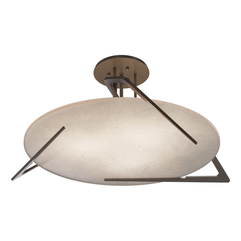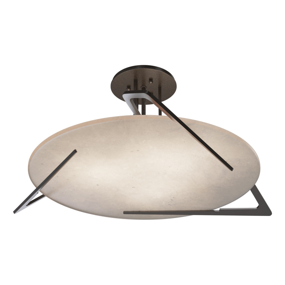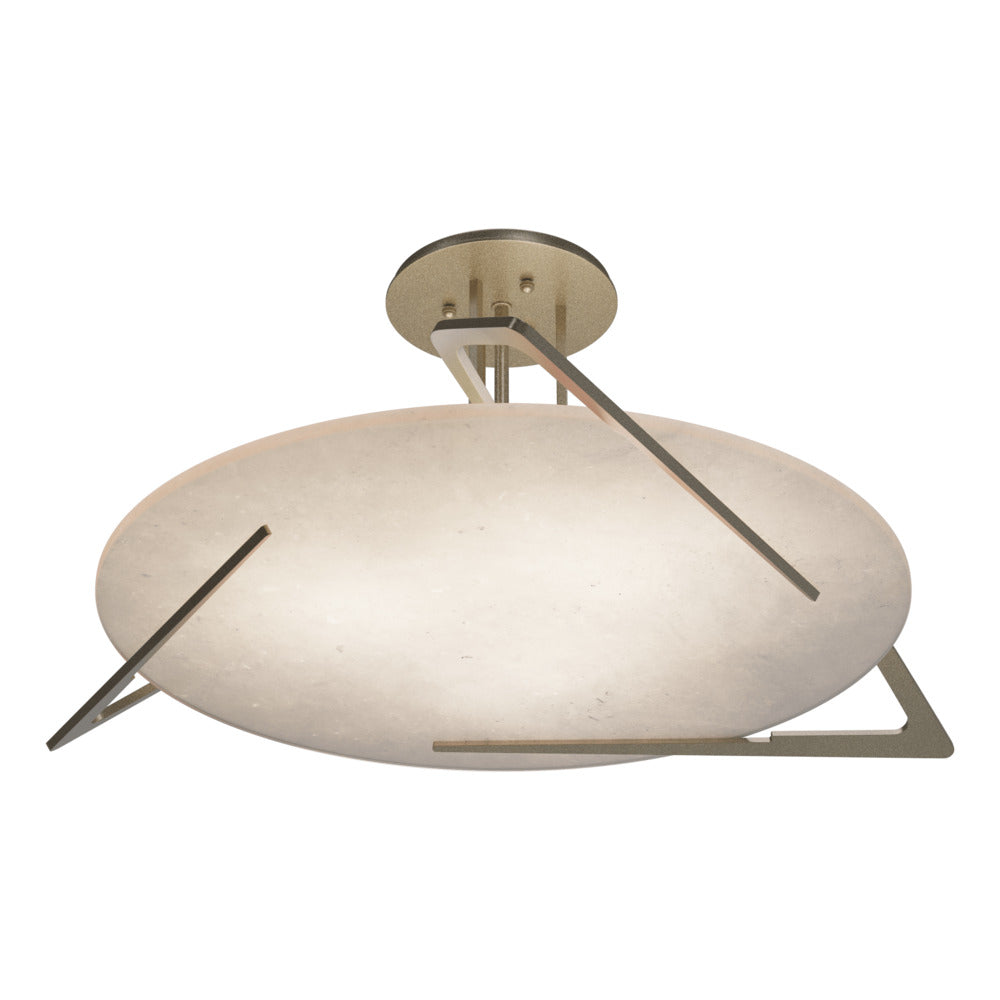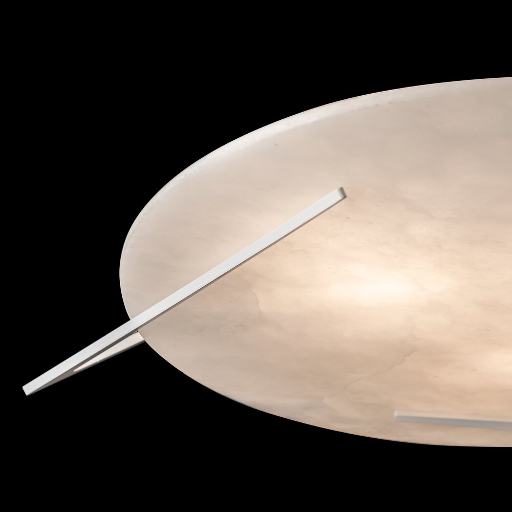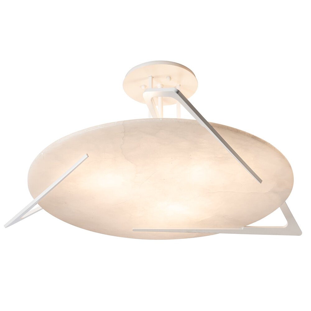 Elevate your space with the Callisto Semi-Flush light fixture. A large disc of softly glowing alabaster is held by three angled metal arms for a sophisticated aesthetic. Designer Ori Goldberg "wanted the softness of the alabaster stone to contrast with the metal in a clean, contemporary design."