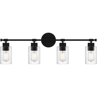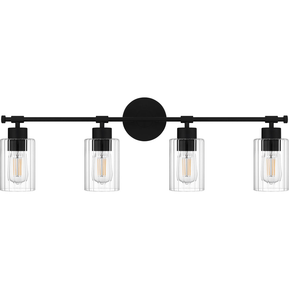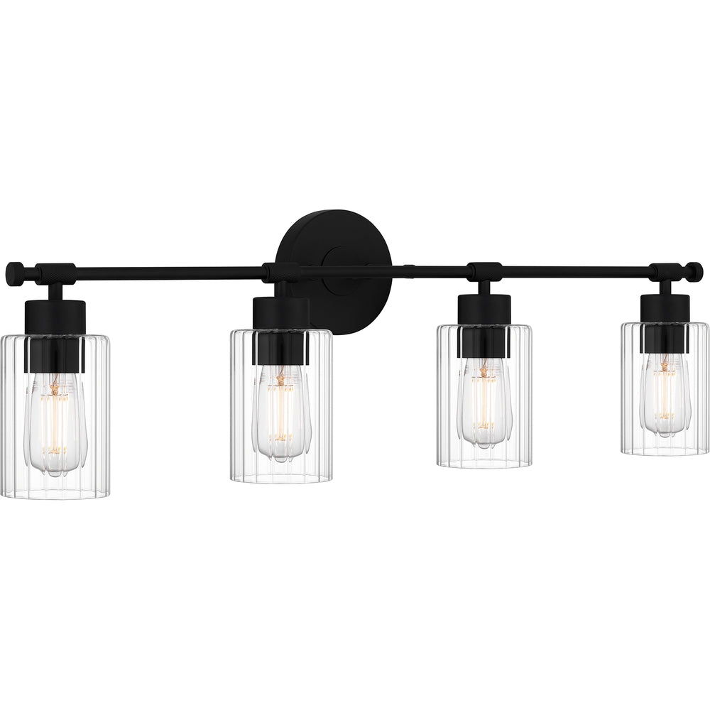 Clear ribbed glass shades create a sense of tranquility in the Caputo bath light collection. This versatile, modern industrial style design is accentuated by clean lines and finished in matte black for timeless appeal. Configure Caputo with shades facing up or down depending on your vanity lighting needs.