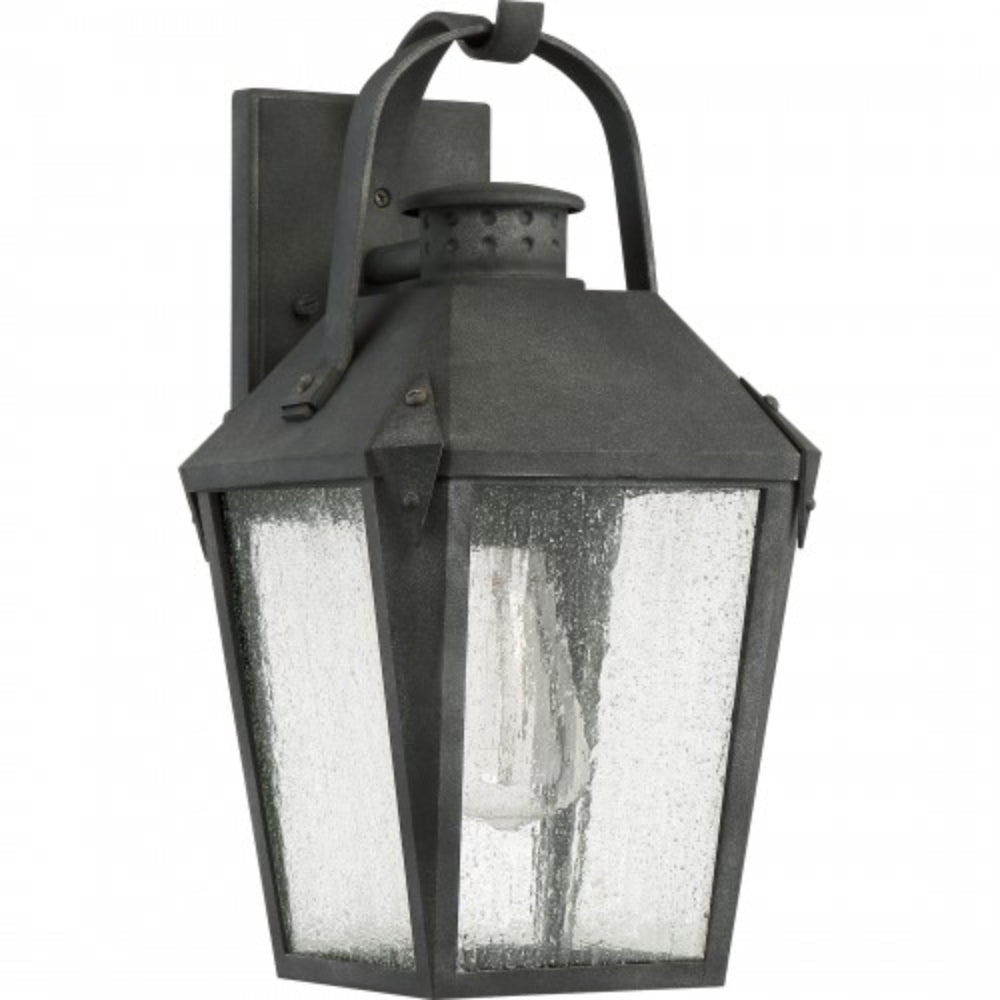 The aptly named Carriage Collection features great style that suits many different homes. All of the details from the metal strap to the diamond-shaped corner accents the clear seedy glass come together to create a classic, timeless design. The depth and richness of the Mottled Black finish gives the appearance of age and time gone by. (Please note that the vintage bulbs are not included but are available for purchase.)
