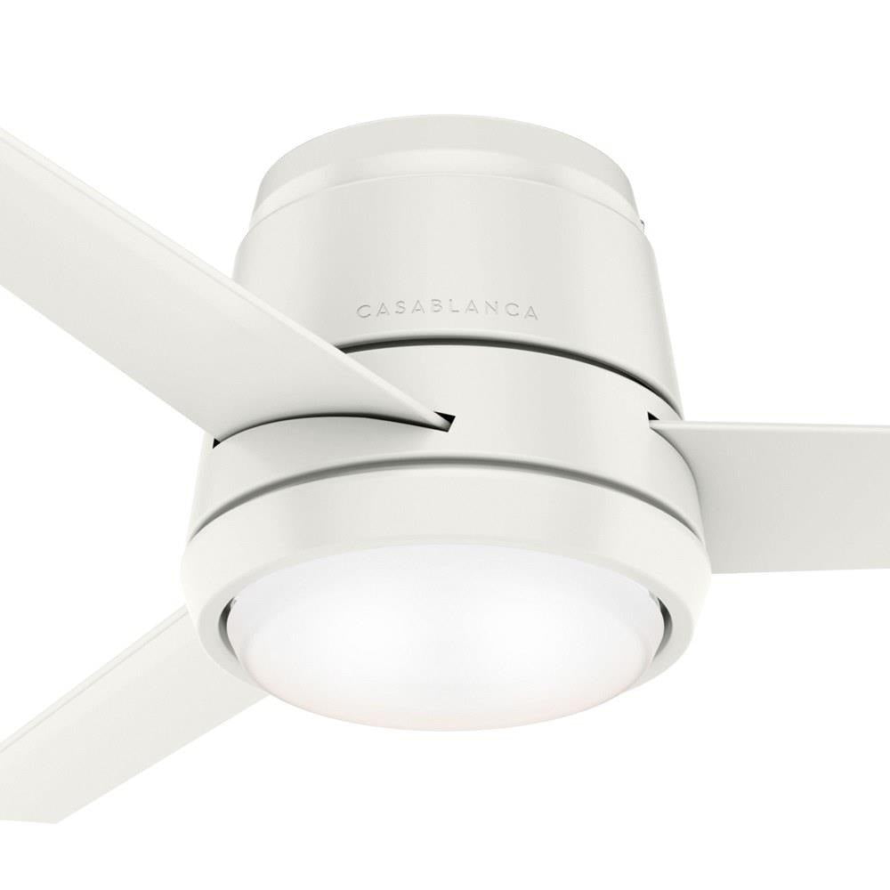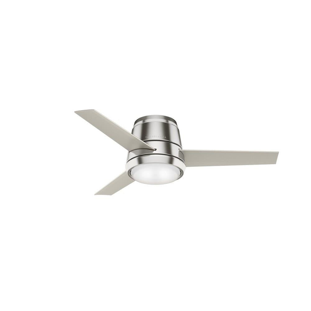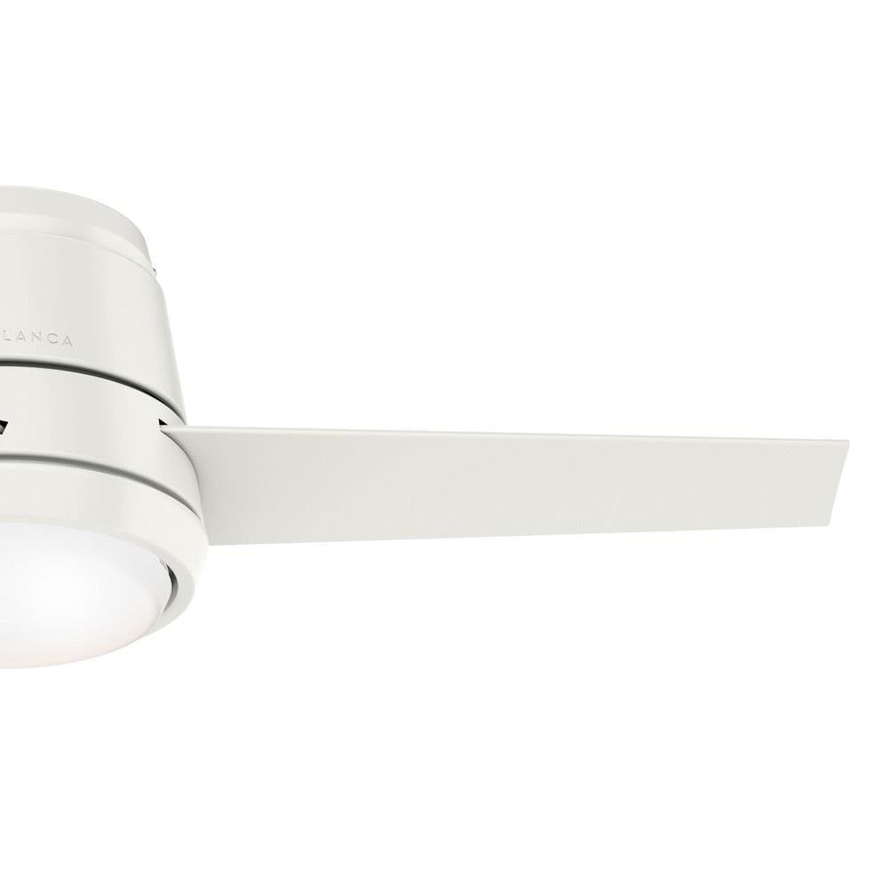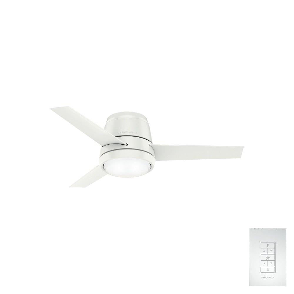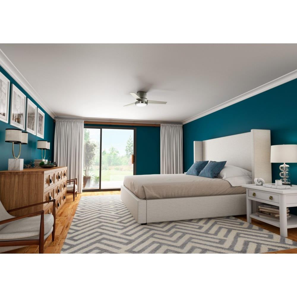 The Commodus modern ceiling fan with light touts a transitional design making it a unique ceiling fan for contemporary and casual room styles. The 10.5-inch compact ultra-low-profile design makes the Commodus ideal for rooms with low ceilings. It fits flush to the ceiling to deliver powerful air performance without sacrificing style or space in rooms with low ceilings. This 44-inch small ceiling fan is perfect for bedrooms, living rooms, fitness rooms, and dining rooms. The performance ceiling fan blades are optimized for efficient air movement. The Commodus fan features a preinstalled remote receiver for easy installation, an LED light module, and a wall control for fan speed and lighting adjustments. Rated for indoor use only 1 bulbs included Wall control included WHISPER-QUIET MOTOR: 4-speed, Direct Drive reversible motor for optimal performance in summer and winter. SMALL ROOM FAN: Ideal size for home offices, laundry rooms, and bedrooms. LOW PROFILE MOUNTING: Designed to fit flush against ceilings less than 9 feet high. COMPATIBLE ACCESSORIES: Works with Hunter and Casablanca accessories, not including Hunter Original accessories