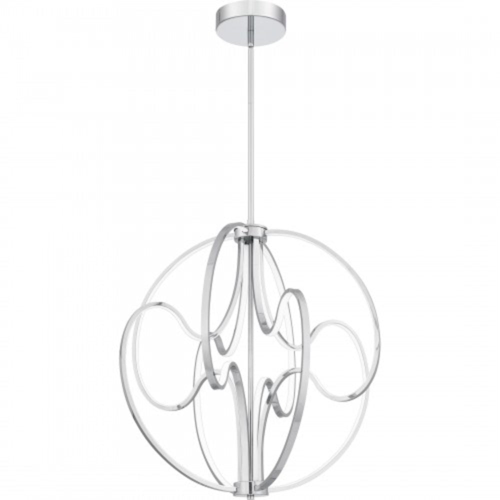 With its soft curves and striking geometric shape, Clairon pendant lights are both elegant and captivating. The globe silhouette features swirling lines in your choice of matte black or polished chrome, complemented by an integrated LED light source for an all-over lighting effect. Part of the popular Platinum by Quoizel collection, Clairon pairs perfectly with modern or contemporary spaces.