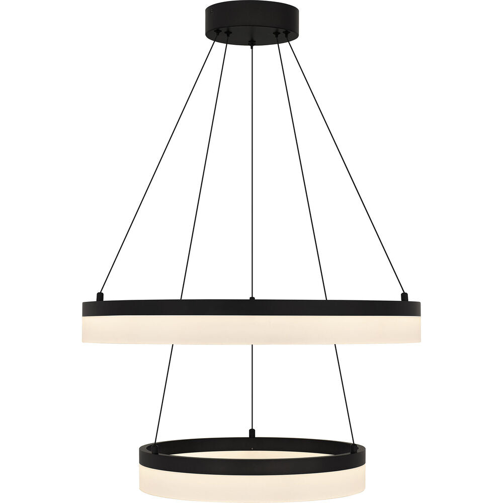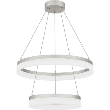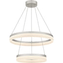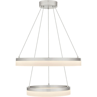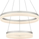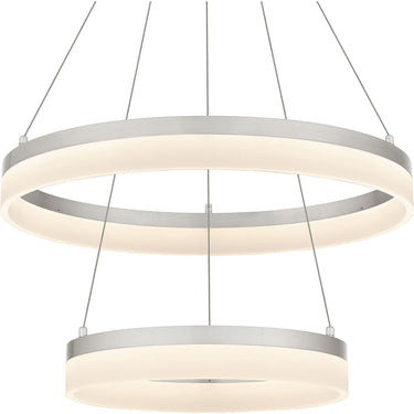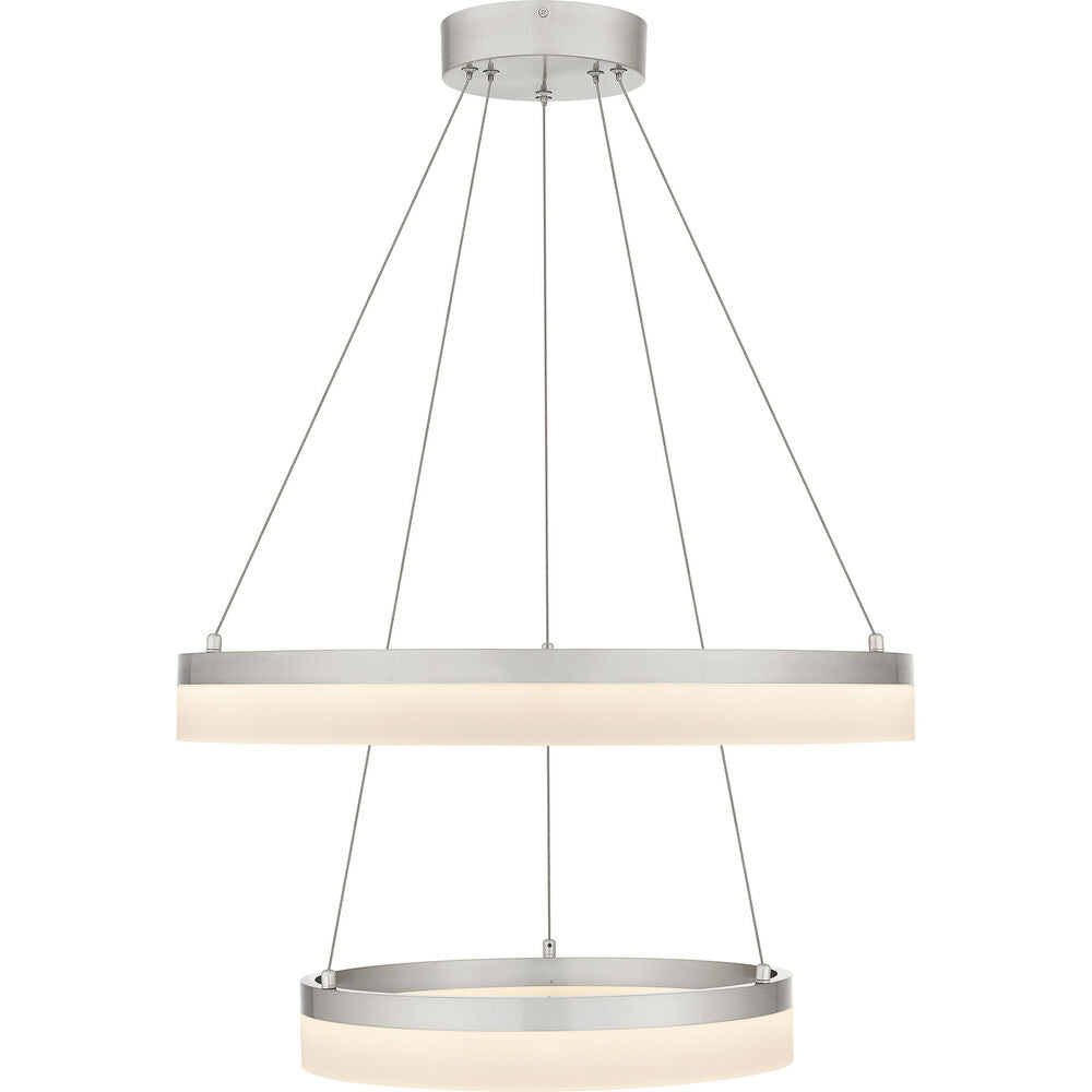 Sleek and striking, the minimalist Cohen series hypnotizes with a halo-like ring of glowing LED light. Choose from a variety of style options from flush mount to chandelier, all featuring a white acrylic shade and your choice of either brushed nickel or oil rubbed bronze finish. The chandelier style is suspended from steel cord, reinforcing a contemporary aesthetic.
