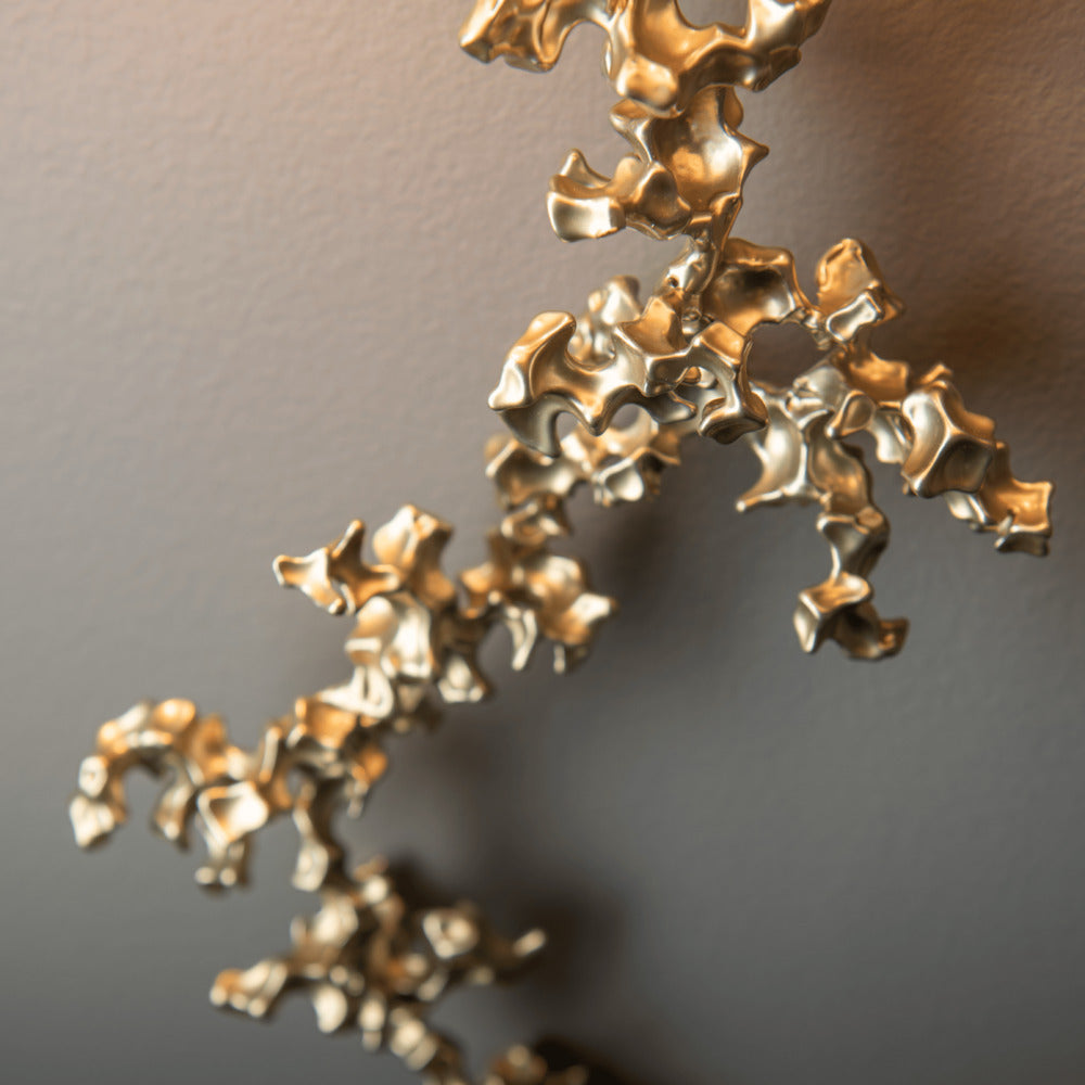 Delicate. Elegant. Stunning. This unique and beautiful wall sconce is both simple and complex. Simple in its beauty. Complex in its creation. Each vertical coral "reef" is painstakingly created by artist-makers who weld curated small, coral-like pieces of aluminum together into this exquisite vertical array for a one-of-a-kind look. Part of ART + ALCHEMY by Hubbardton Forge.