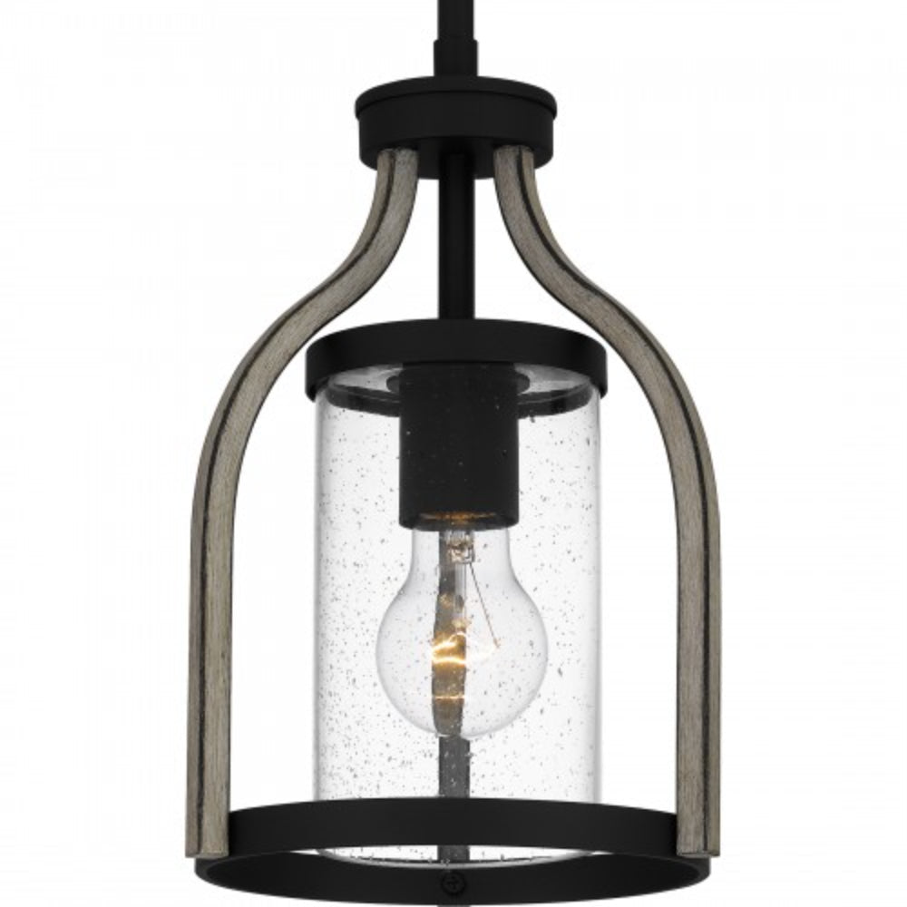 Add a rustic feel to your home with Cornelia. This farmhouse-inspired collection features weathered white maple wood toned arms and a contrasting matte black finish. Cylindrical clear seedy glass shades complete the look, highlighting the sleek exposed bulb sockets. Cornelia is available as a mini pendant light or chandelier.