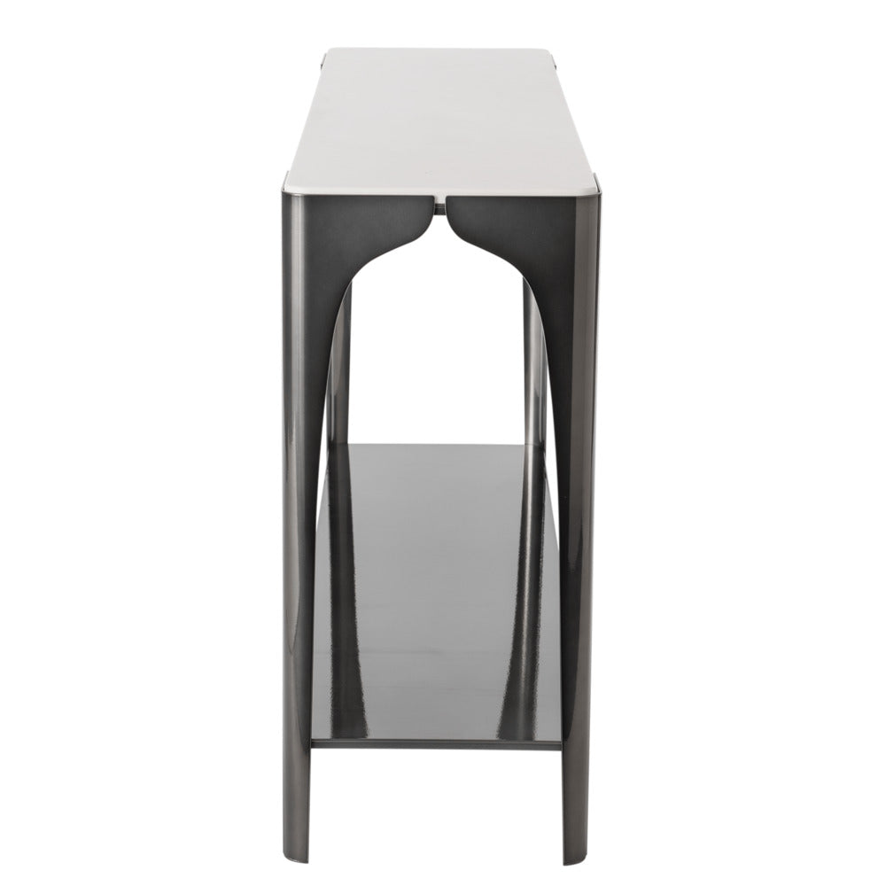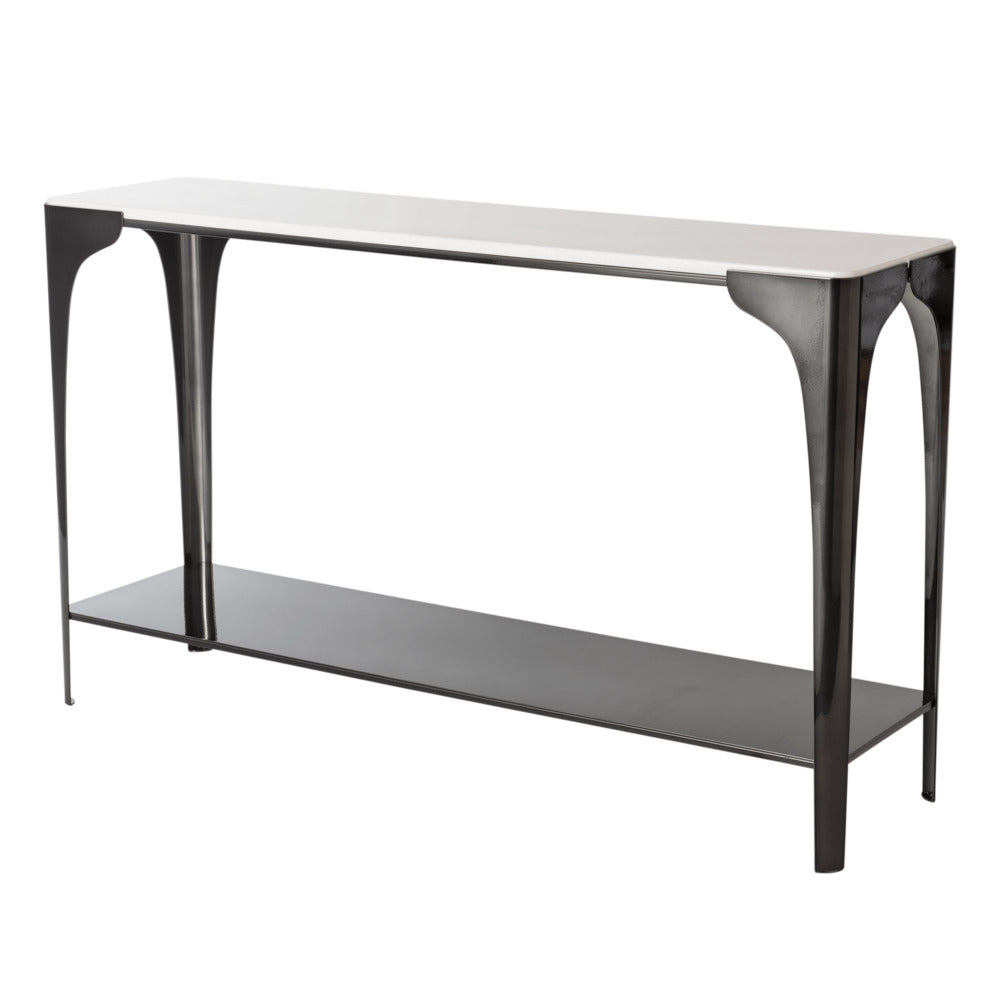 Bring a sense of elegance to any living or lounge area, hallway, entryway, and more with the Cove Console Table. Its sleek design features gentle curves of metal and a white solid marble top that blend modern and classic element for a contemporary look. The lower shelf adds storage and display options, while elevating this piece from ordinary to extraordinary.