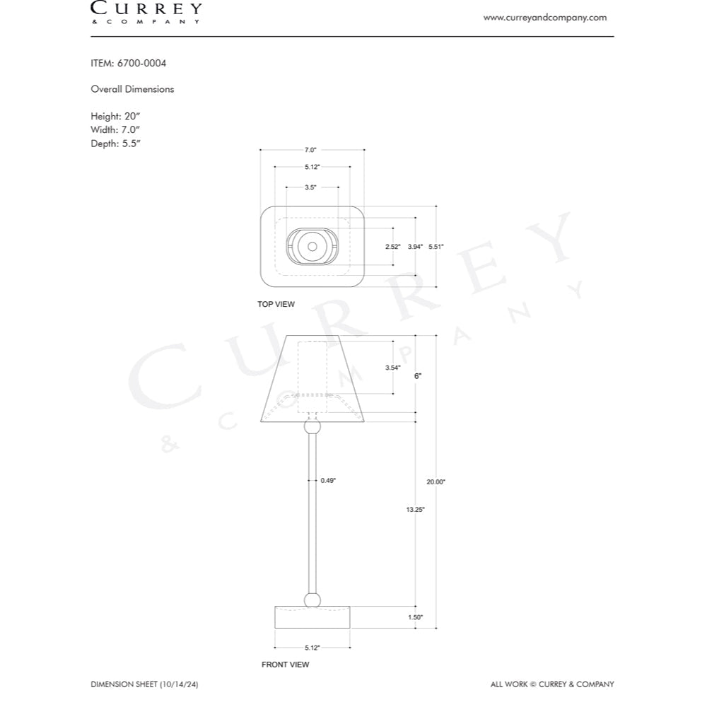 Currey & Company 20.0" Gadabout Cordless Rechargeable Table Lamp