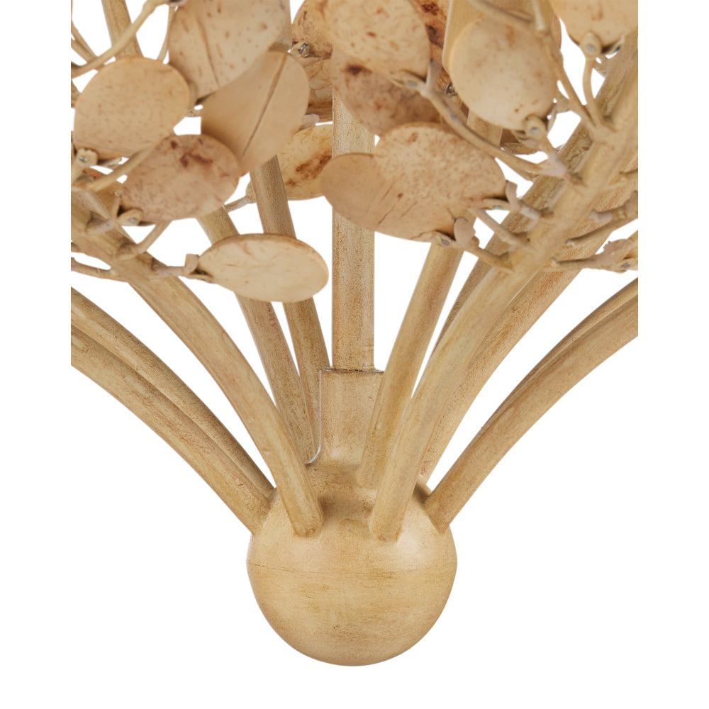 As graceful as the fronds that flow from the crown of the palm tree after which it is named, the Maypan Chandelier has flowing upward limbs of petals made of bleached coconut shells held in place by a wrought iron frame finished in coco cream. The color of the metal is so in sync with the natural material, the beige pendant looks as if it is a living specimen. Adjustable from 21.5" to 63.5" with use of included chain/rod kit/cable. If your space calls for a longer drop, additional chain/rods/cable is available for purchase.