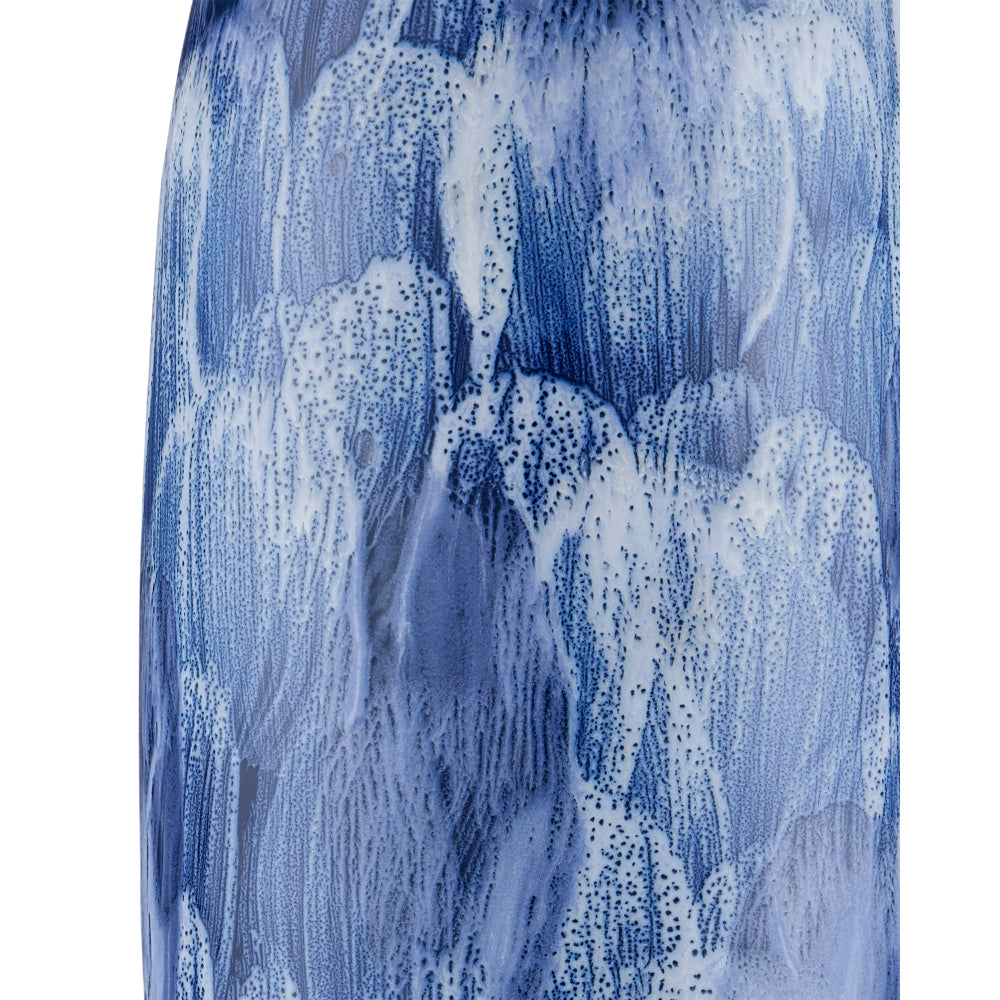 If the body of the Pallas Table Lamp was a canvas, it would be a true work of art because it has painterly brush strokes in white on blue flowing along its surface. Illustrating the handmade aspect of this particular fixture is the white glaze that bubbles where it is thickest over the luminous blue, giving the lamp greater texture. The intermingled smudges are layered onto the lamp to achieve added artfulness.