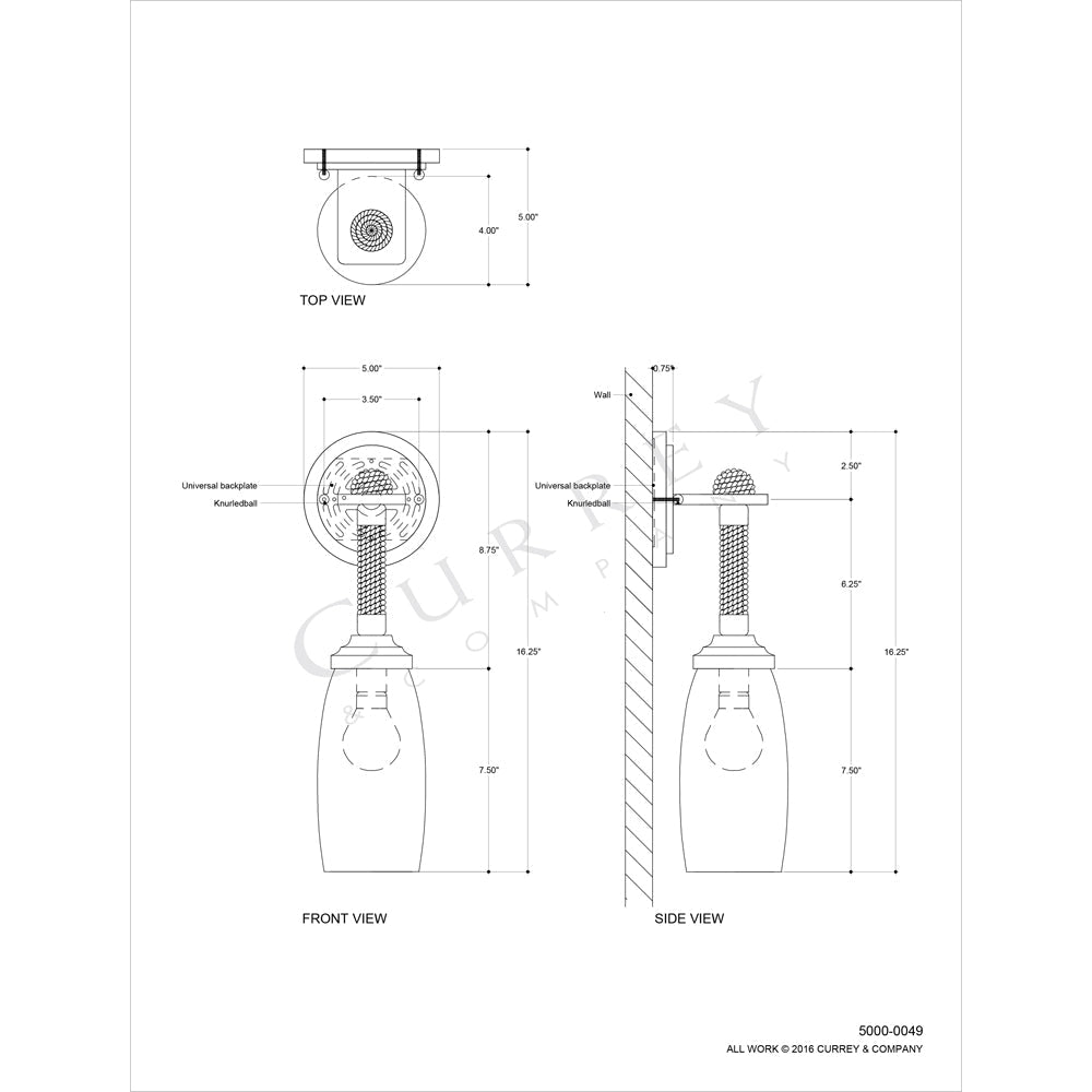 Currey & Company 5000-0049 Hightider Wall Sconce in French Black/Natural