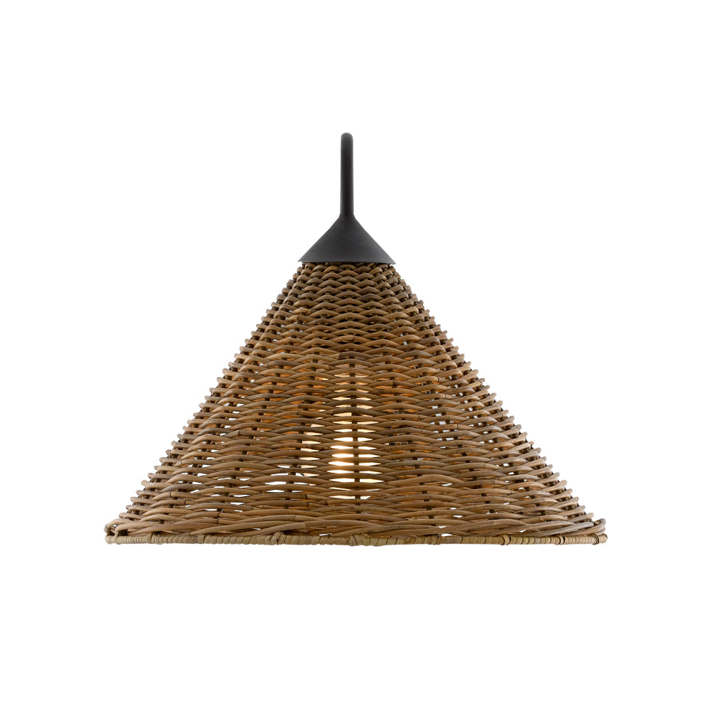 Woven natural Arurog reeds create the elemental shade of the Basket Wall Sconce. The wrought iron frame and wall plate in a blacksmith finish are simple in their design to make this rattan wall sconce perfect for casually chic interiors. We also offer the Basket in a pendant and an oval chandelier.