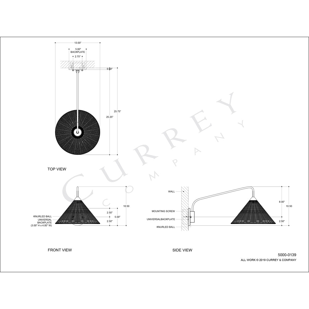 Currey & Company 5000-0139 Basket Swing Arm Sconce in Blacksmith/Natural