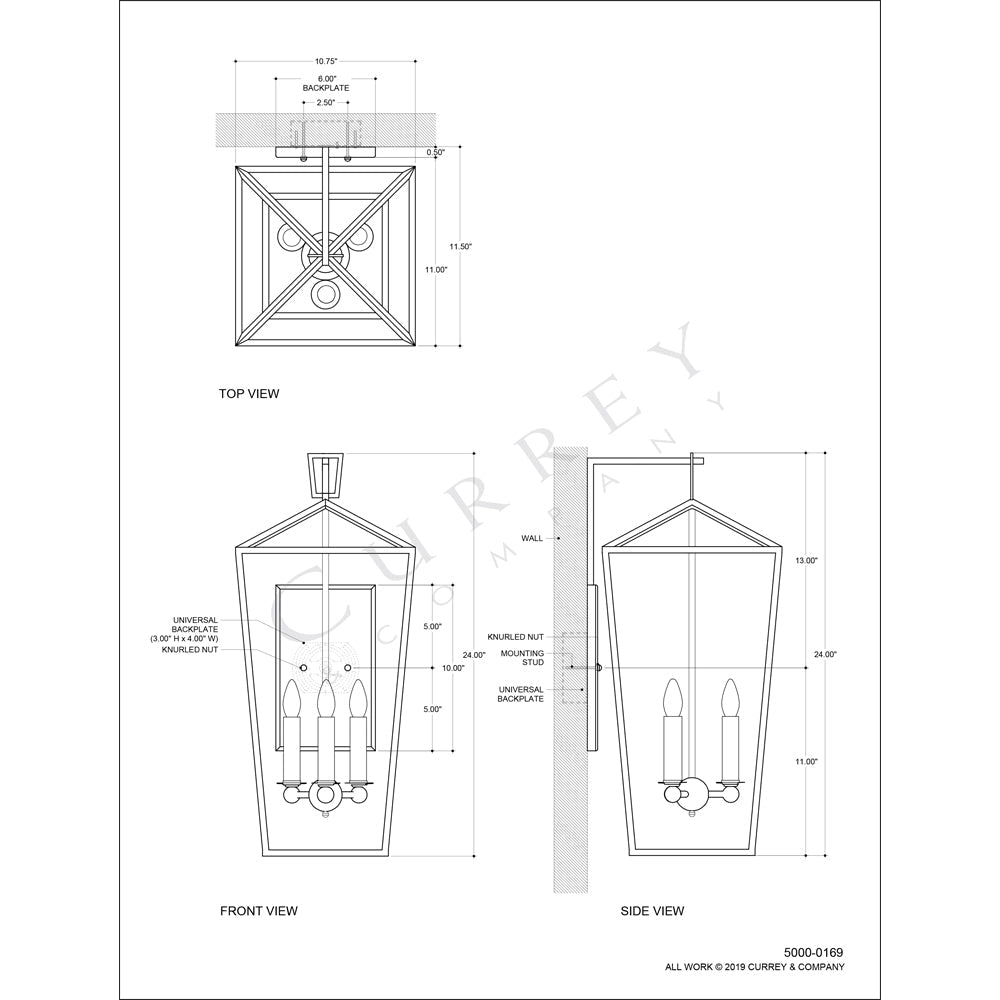 The Denison Wall Sconce is a hammered wrought-iron fixture in a Mole black finish. The classic lantern shape has stood the test of time to make it one of our most popular offerings. A design element of note is the square that fastens the lantern to the chain. This black sconce, certified for damp locations, is one of a number of sizes and finishes in the Denison family.