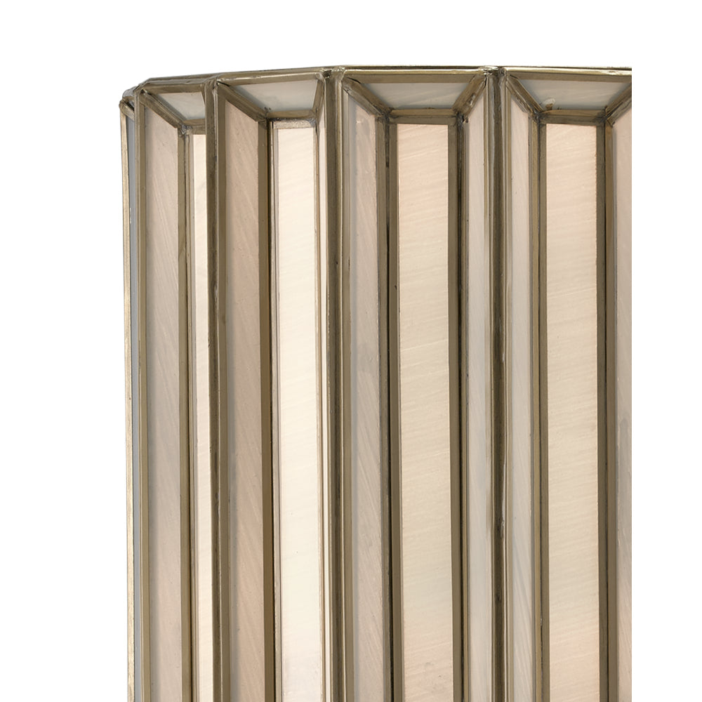 When a soft glow is desired, milk glass is one of the best materials to diffuse illumination. Our Daze Wall Sconce is made of articulated panels of white milk glass that are joined together by ribs of metal in an antique brass finish. This white sconce, which joins a number of fixtures in the Daze family designed by Clarence Mallari, will turn luminous when it is switched on.
