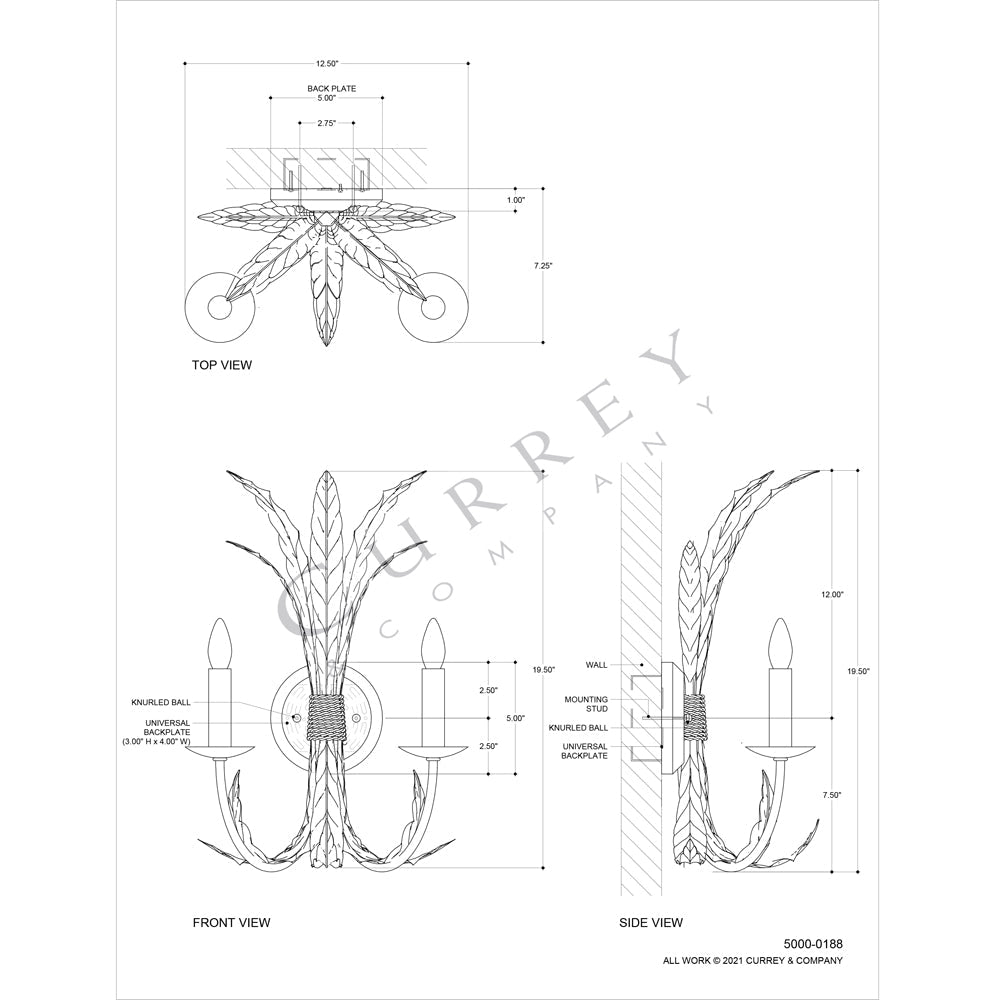 Currey & Company 5000-0188 Bette Wall Sconce in Grecian Gold Leaf